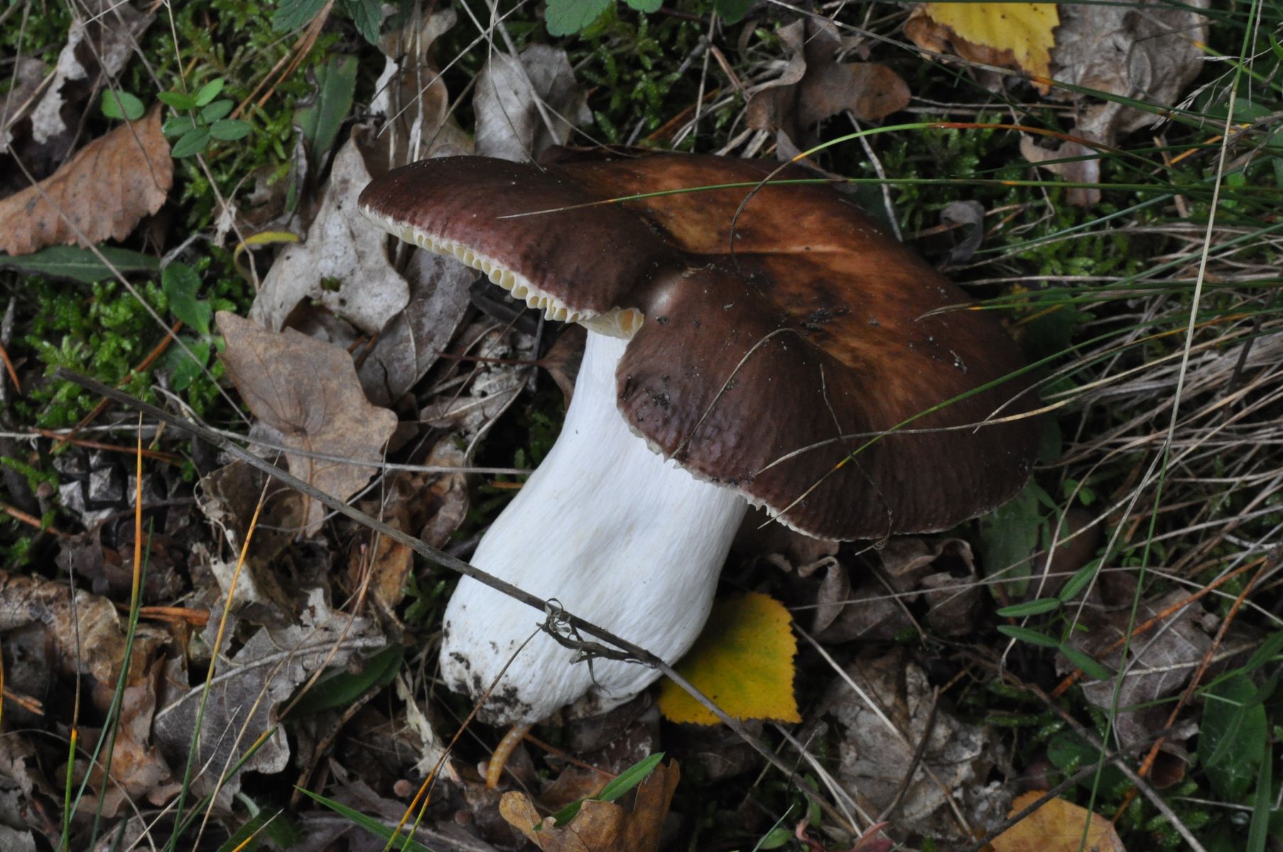 • Am Rande einer Landstraße, auf dem Grünstreifen zwischen der Straße und dem angrenzenden Kiefer-Eiche-Mischbestand, fand ich heute Dutzende Fruchtkörper eines sehr großen Täublings (Hutdurchmesser zwischen 10 und 15 cm.