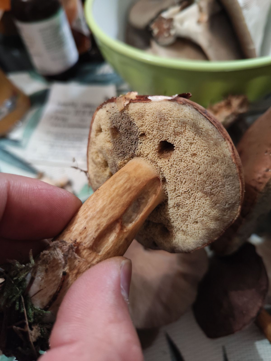 Bislang habe ich trotz Recherche (auch hier im Forum) keine Informationen zu einer Artabgrenzung bekommen. Bei den vielen Unterschieden (Stielzeichnung, Stieldicke, Hutbeschaffenheit, Fleischfarbe) würde ich dies aber erwarten.
