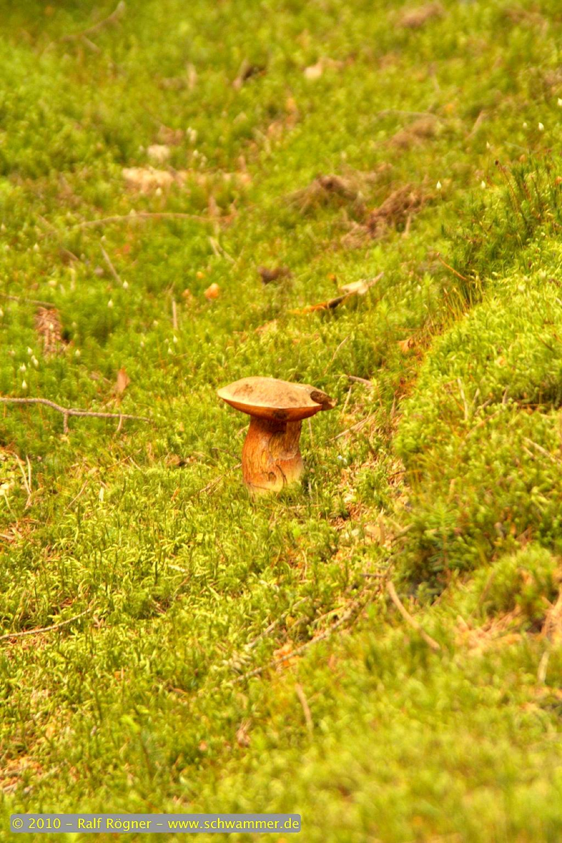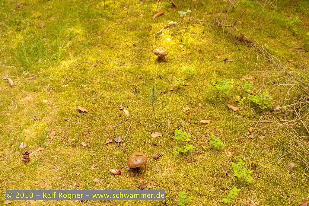 Schon auf der Fahrt zum Wald hatte ich das Gefühl, dass heute ein guter Tag werden würde und deswegen durfte meine Frau auch mal eben auf der Landstraße anhalten, damit ich schnell in ein Waldstück huschen konnte. Jahr für Jahr ist hier eine gute Ausbeute an Hexenröhrlingen garantiert und auch heute war es so. In zwei Minuten hatte ich die ersten vier Exemplare und es ging hurtig zurück zum Auto.
