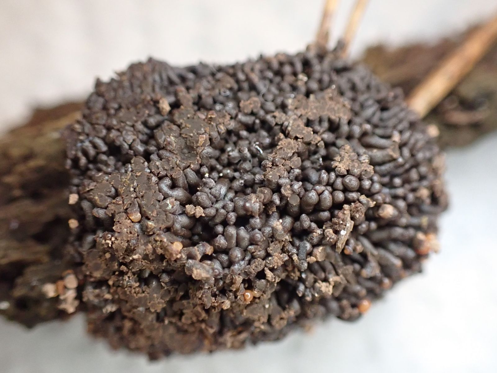 Er wuchs auf einem liegenden Baumstamm, Größe ca. 2cm.