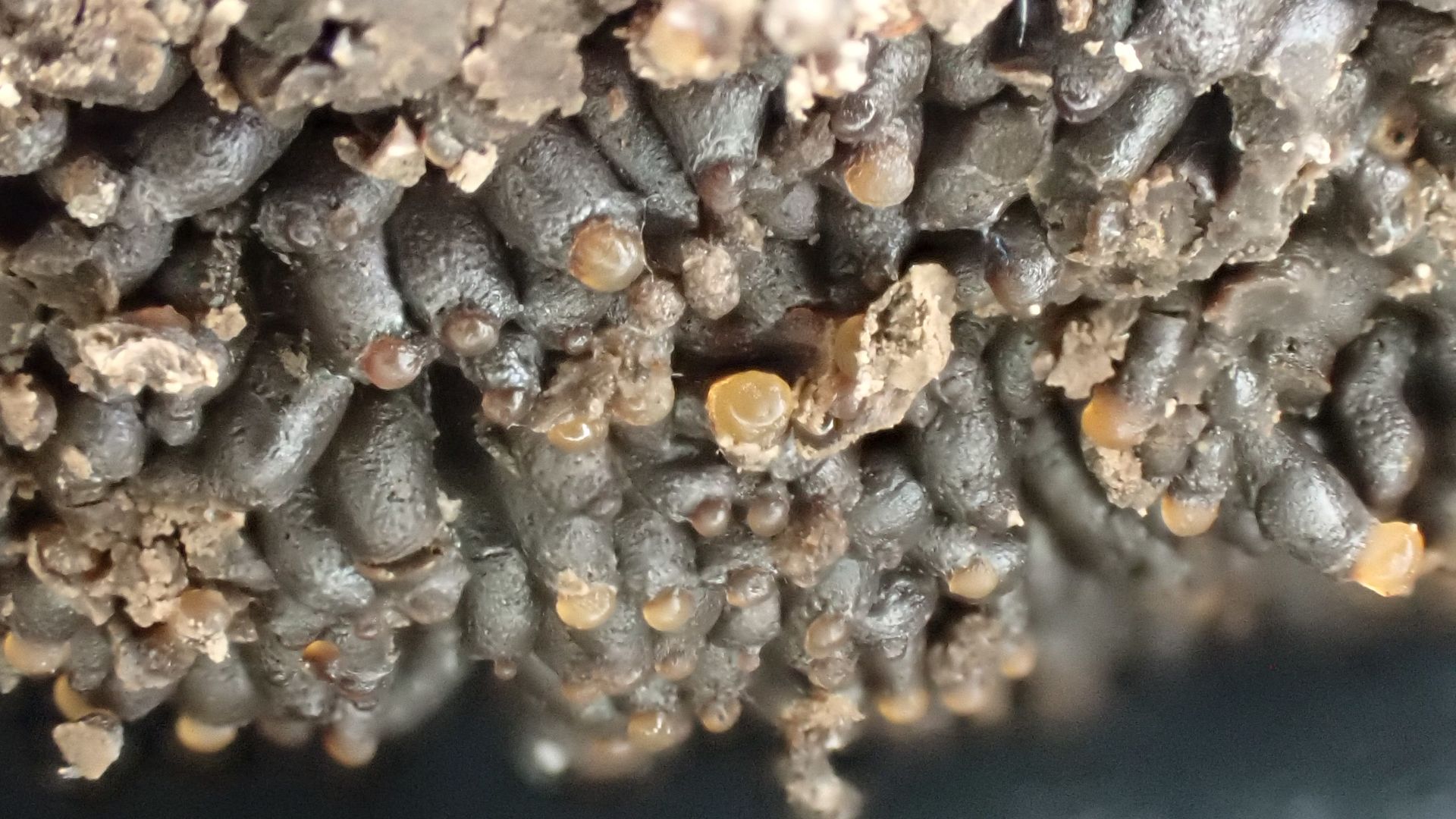 1 stellenweise scheinen Schleimtröpfchen auszutreten