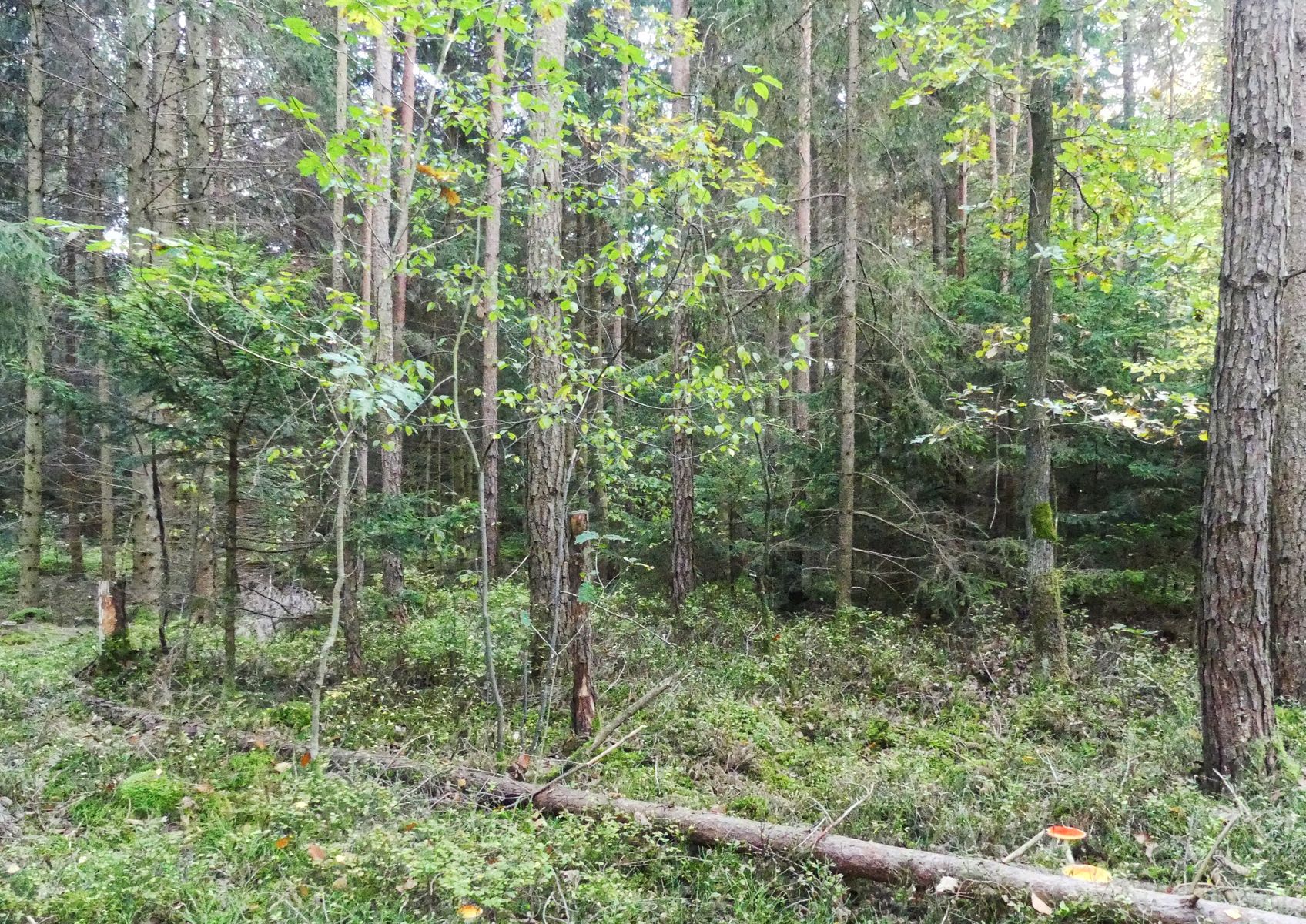 Ich weiß, ein schlechtes Foto, aber von diesem Standort aus fiel mir beim Speisepilzsammeln hinter dem liegenden Baumstamm eine Pflanze auf ...