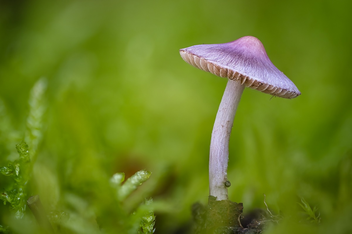 4) Dieser Pilz war etwa 3 cm hoch. Hut und Stiel sind sehr faserig. Auffällig sind die gezahnten Lamellen. Sie sehen nach dunklen Sporenpulver aus.
