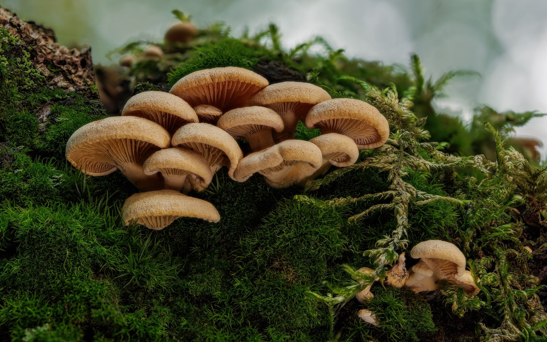 Braun / ockerfarbene Pile am Baumstamm