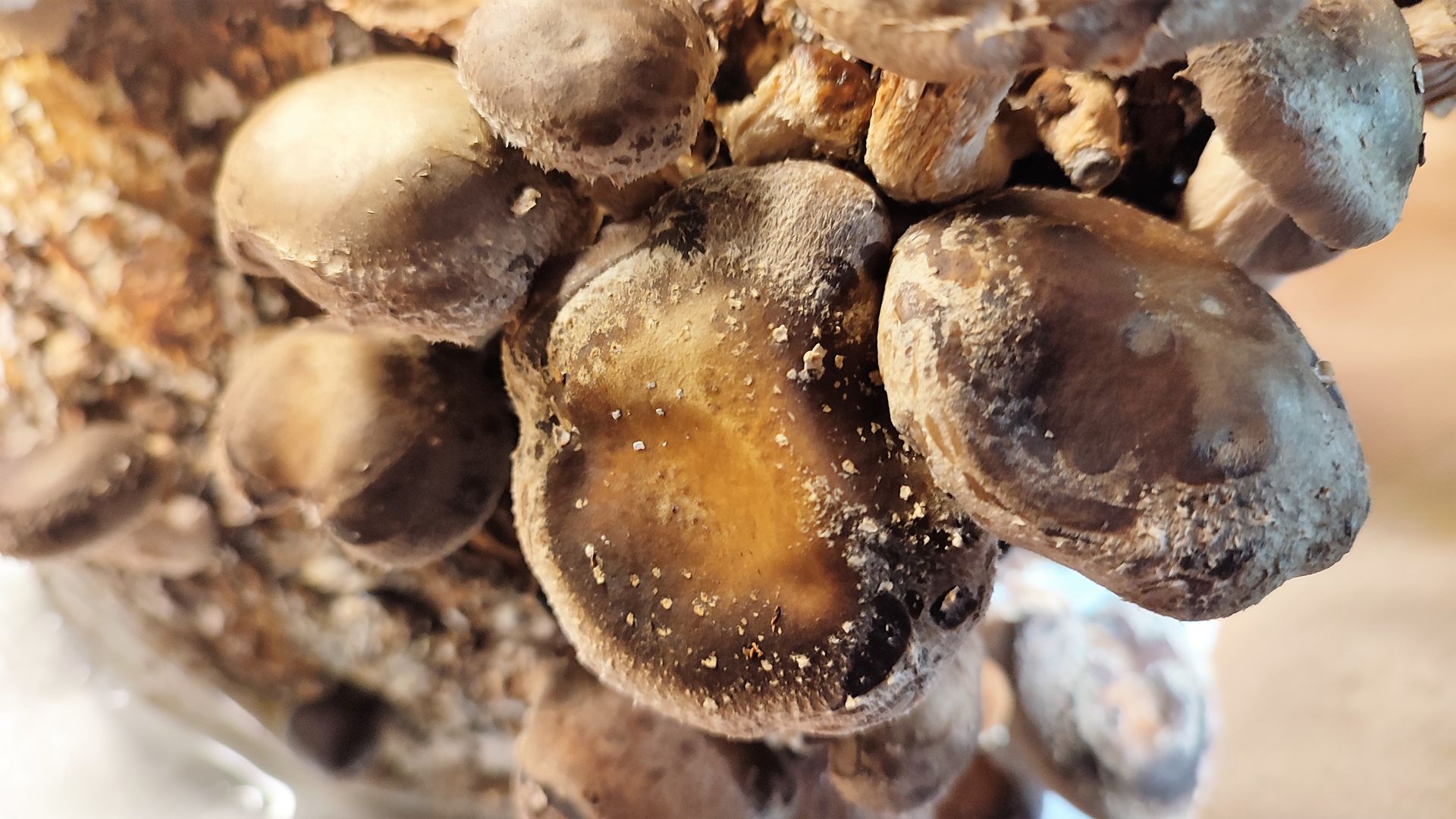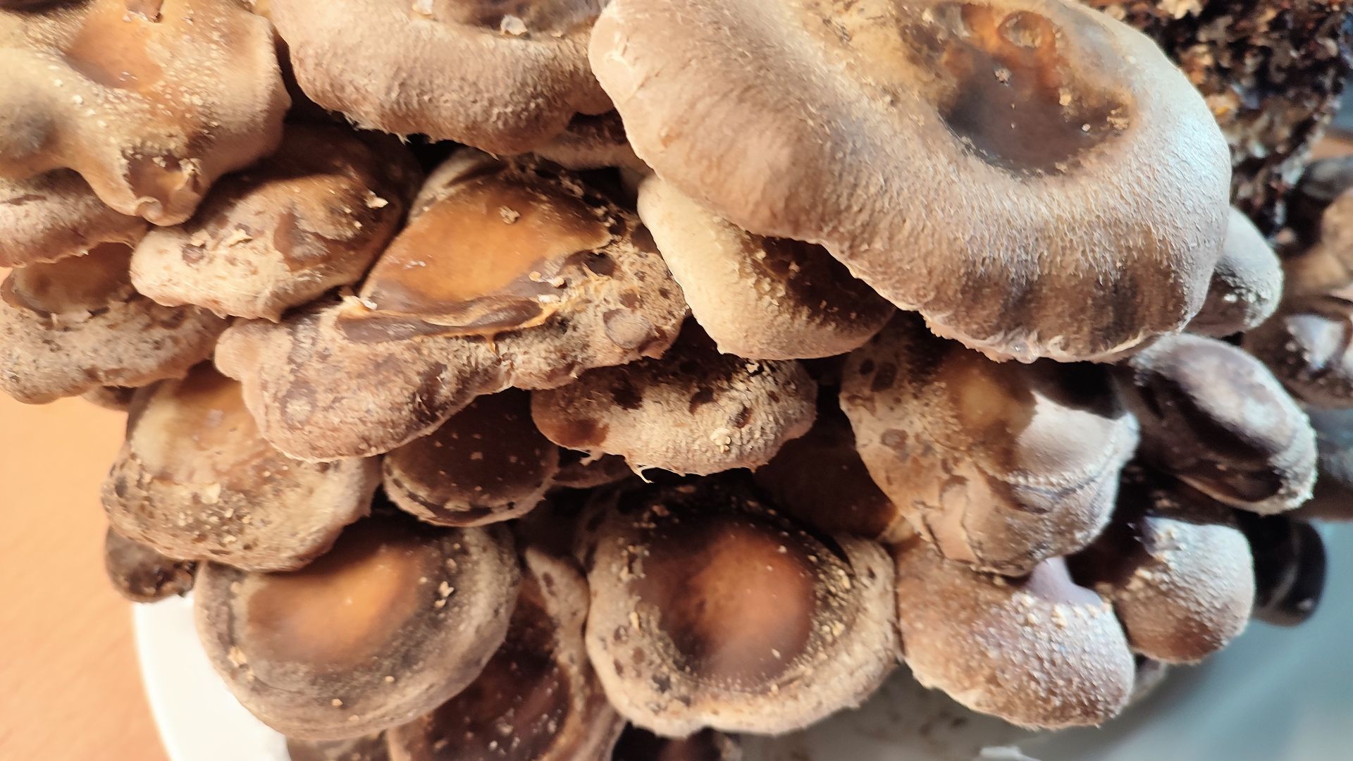 Nun sind in kurzer Zeit viele Pilze gewachsen. Ich kenne nur getrocknete Shiitake Pilze und bin mir nicht sicher, ob die Pilze in Ordnung sind, da sie so ‚knorrig‘ aussehen. Wie erkenne ich, ob ein Pilz verdorben ist?