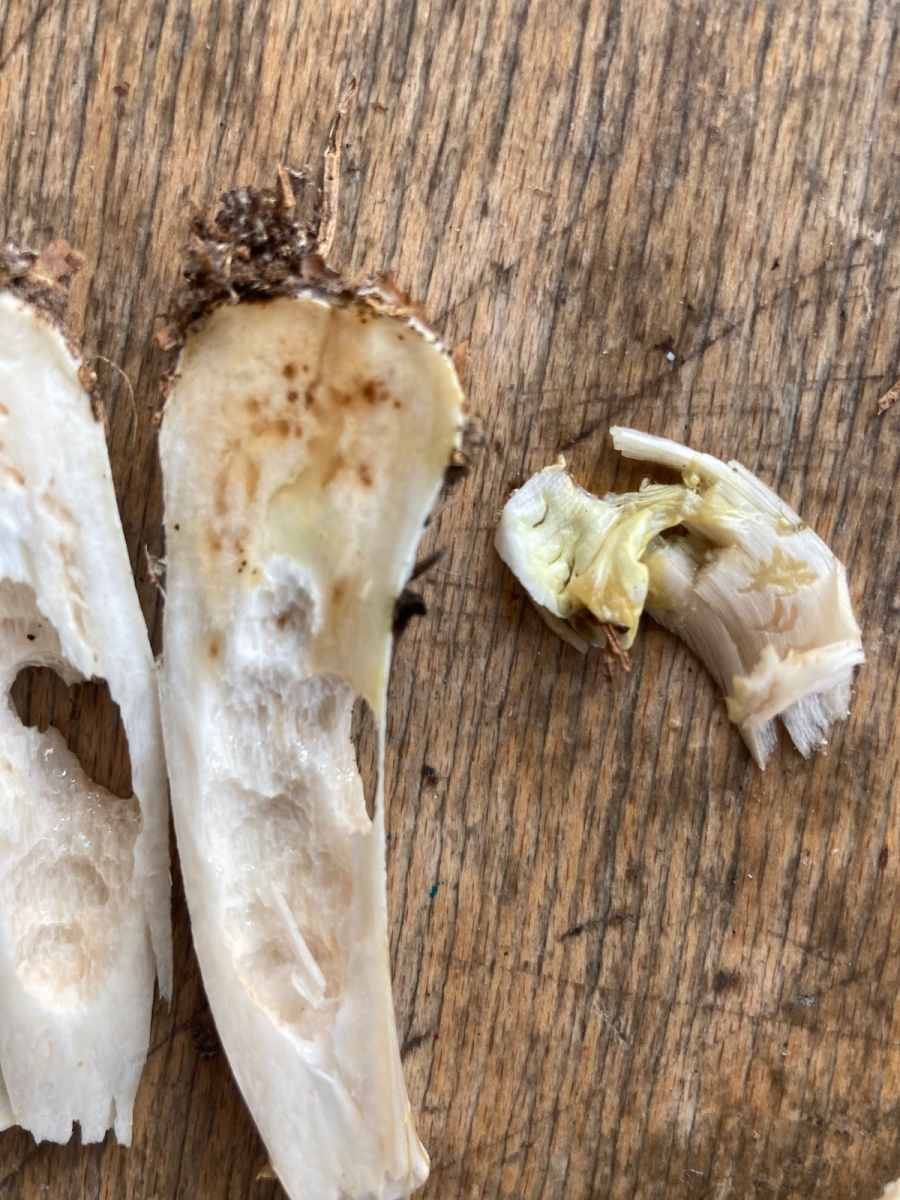 Verfärbung: Gilbt an Stiel- und Hut-Oberfläche auf Druck, aber nicht im Fleisch. Madenfrasgänge Rötlich. Mit KOH deutliche Gelbfärbung des Stielrings, weniger deutlich am Stielfleisch.