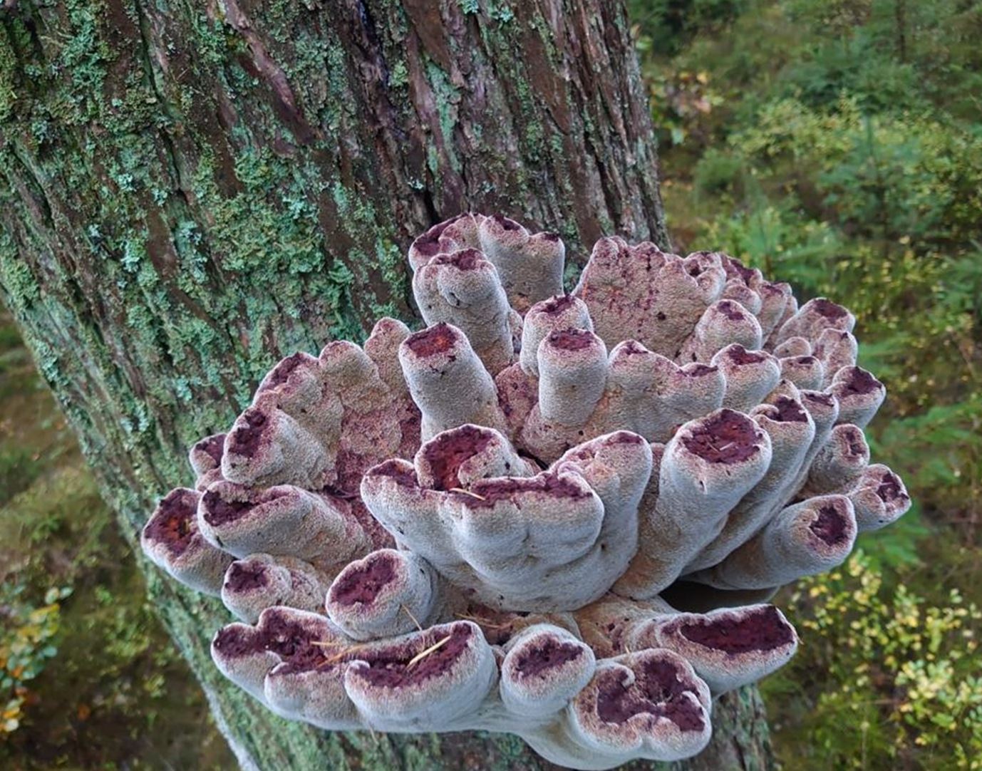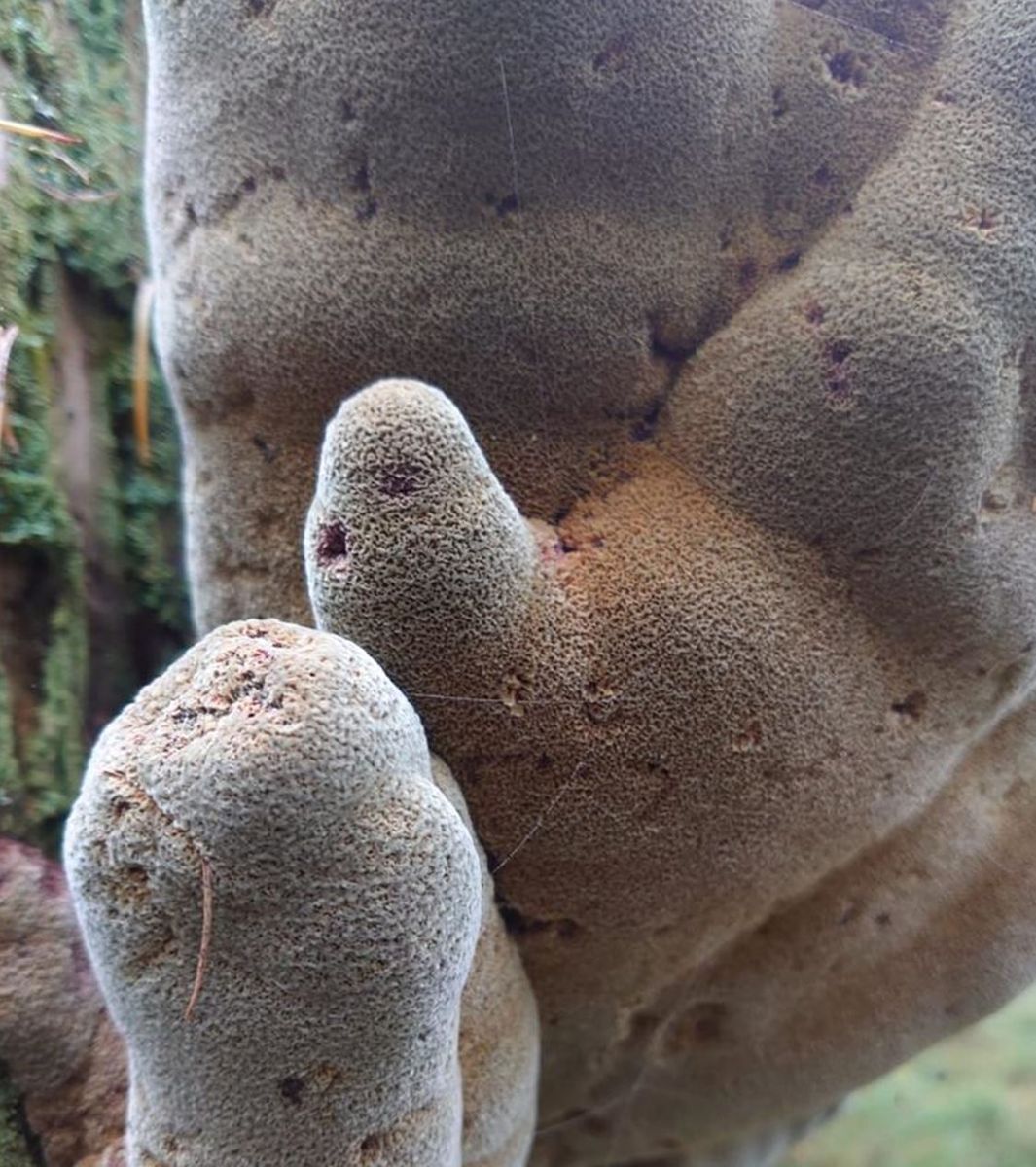 Das ist ein wunderliches Ding, in der Tat!Ich würde jetzt Phaeolus nicht kategorisch ausschließen wollen, weil da die fruchtkörper schon immer mal wieder groteske Formen annehmen, gerade wenn sie weiter oben am Stamm gebildet werden und nicht bodennah an Stümpfen und / oder Wurzeltotholz.