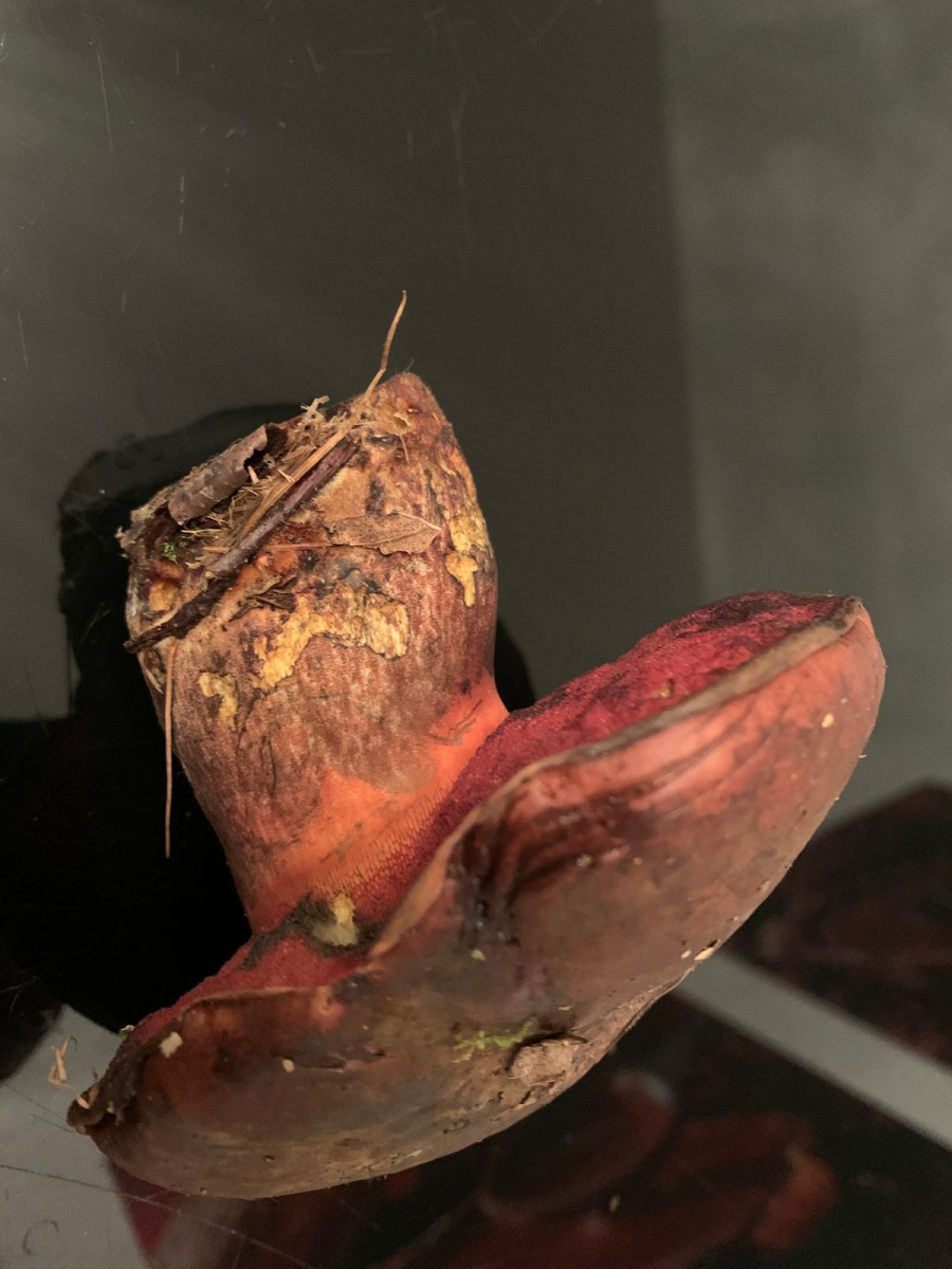 Sofort nach dem Anschneiden: Blaufärbung, Färbung am Stil ist stärker als am Hut