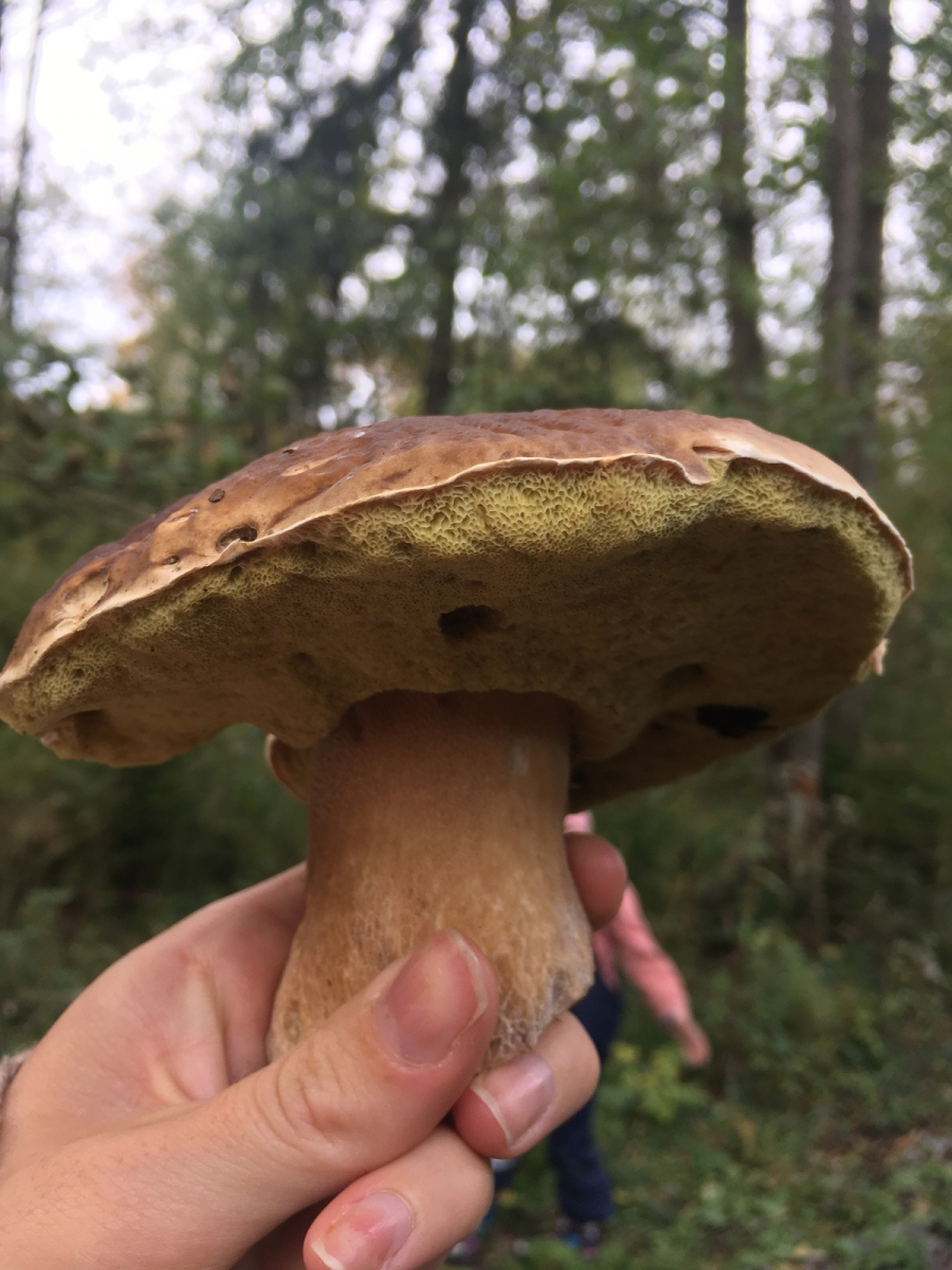 Zum Schluss noch ein Beispiel-Pilz aus einer Beratung. Der Sammler hatte einen Beutel von Allerlei mitgebracht, darunter einen einzigen Röhrling, und der sah so aus (siehe Bild).