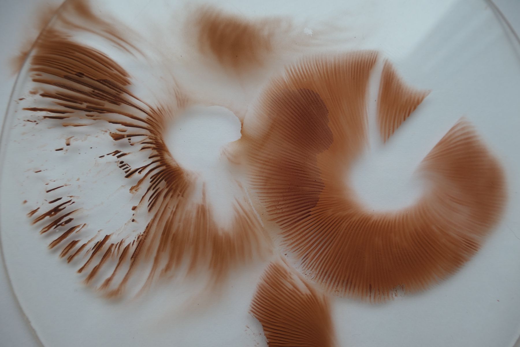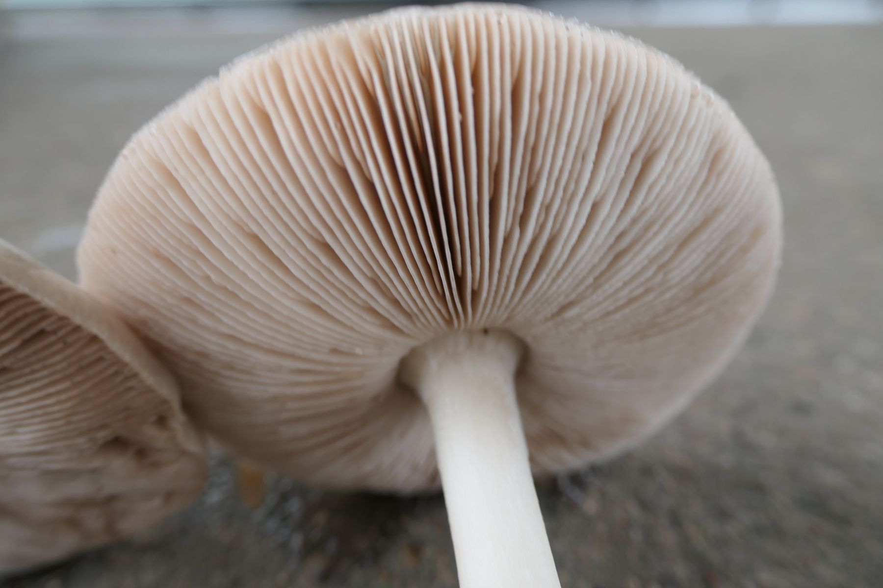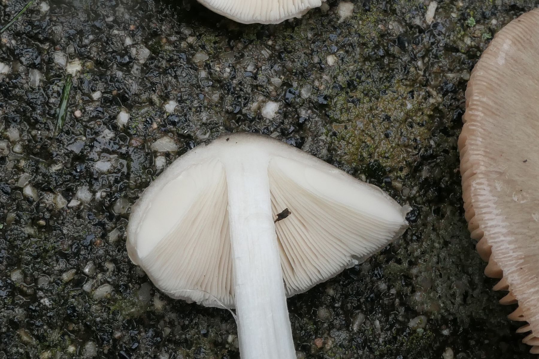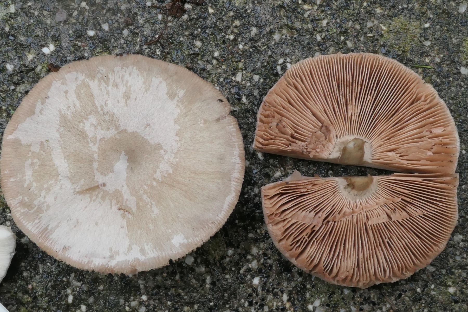 Lamellen gedrängt, dünn, frei, jung weiß, dann braurosa