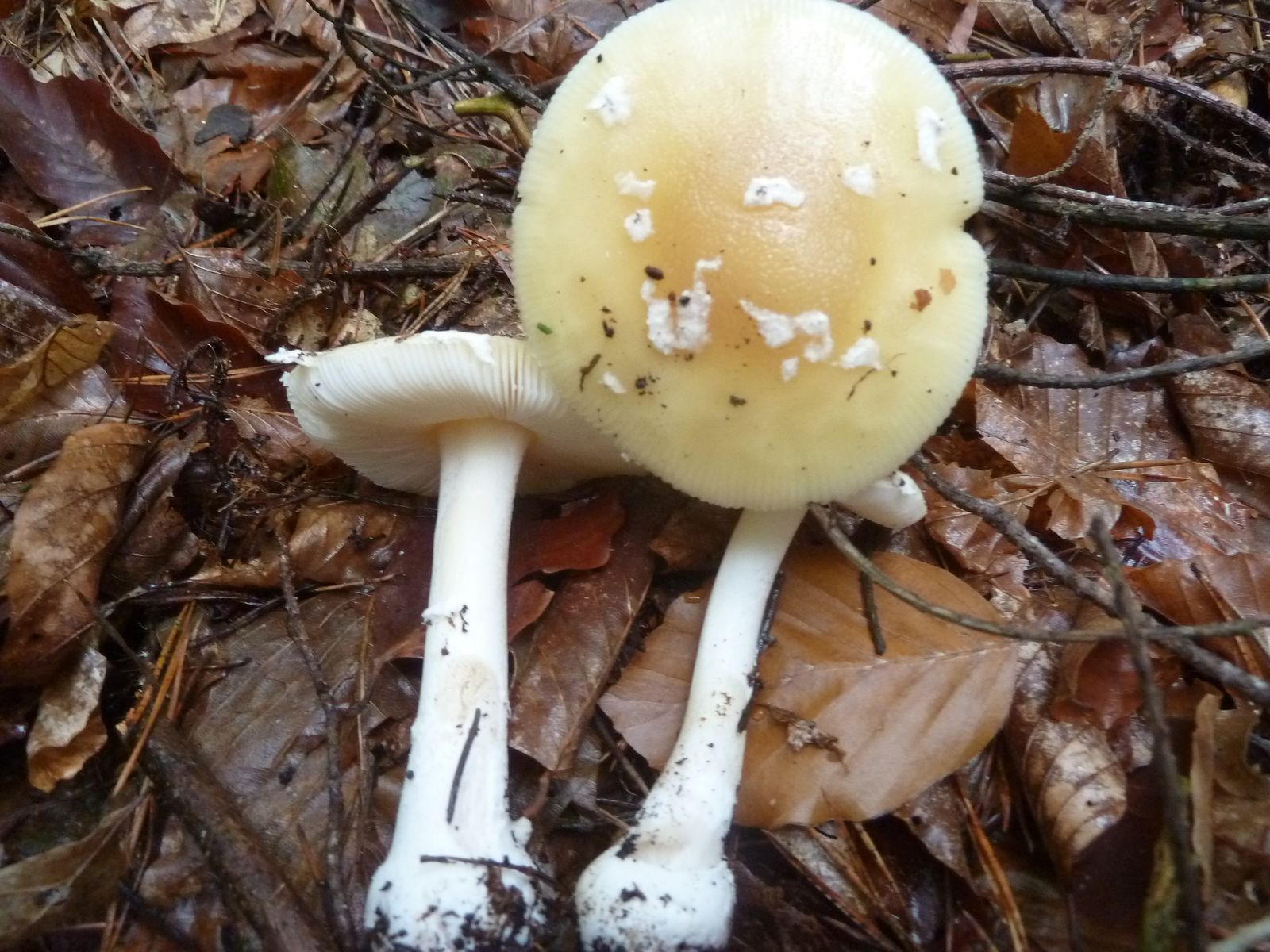 Im Kiefern-Buchen-Birken Mischwald habe ich diese Exemplare gefunden. Lehmboden auf saurem Buntsandstein, Weinbauklima bayrischer Untermain. Zuerst dachte ich an den narzissengelben Wulstling, aber es gibt ja auch noch A. eliae. Entscheidend für die Abgrenzung soll die Hutriefung sein. Allerdings habe ich auch schon Fotos von A. gemmata mit ansatzweise erkennbarer Hutriefung gesehen, falls die abgebildeten Exemplare richtig bestimmt wurden.