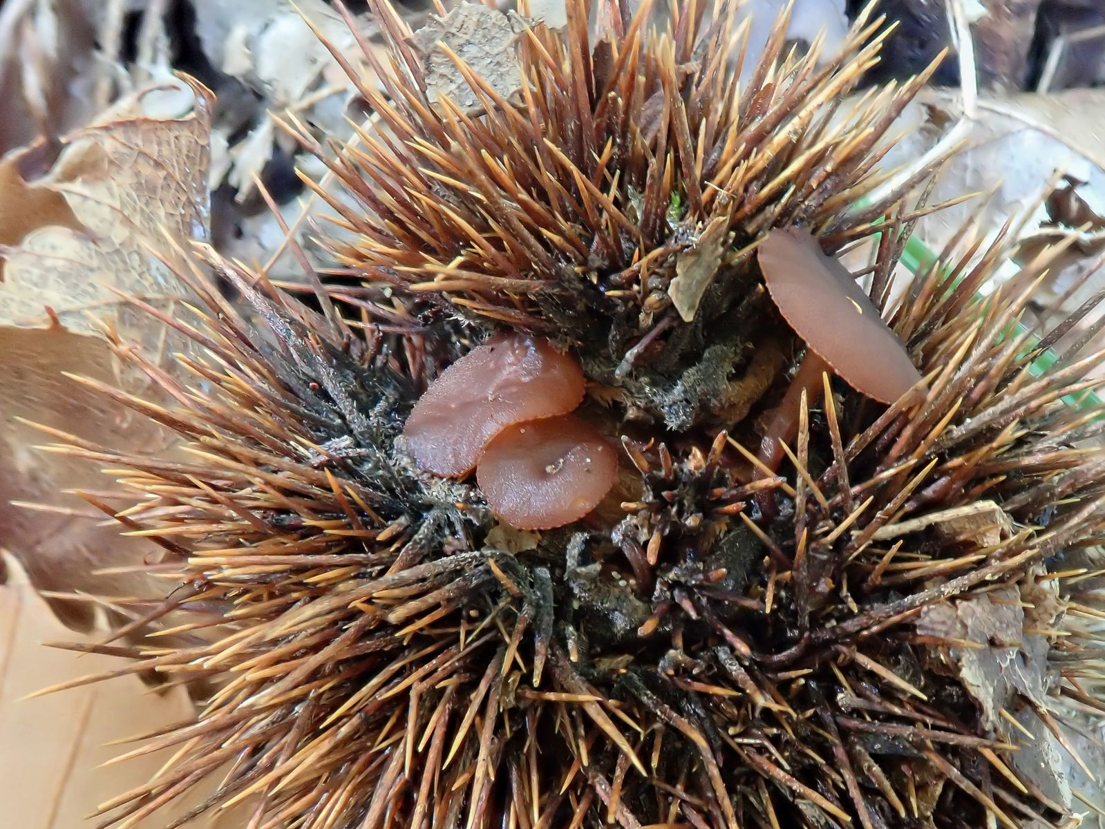 (16) Lanzia echinophila auf Esskastanien-Schalen