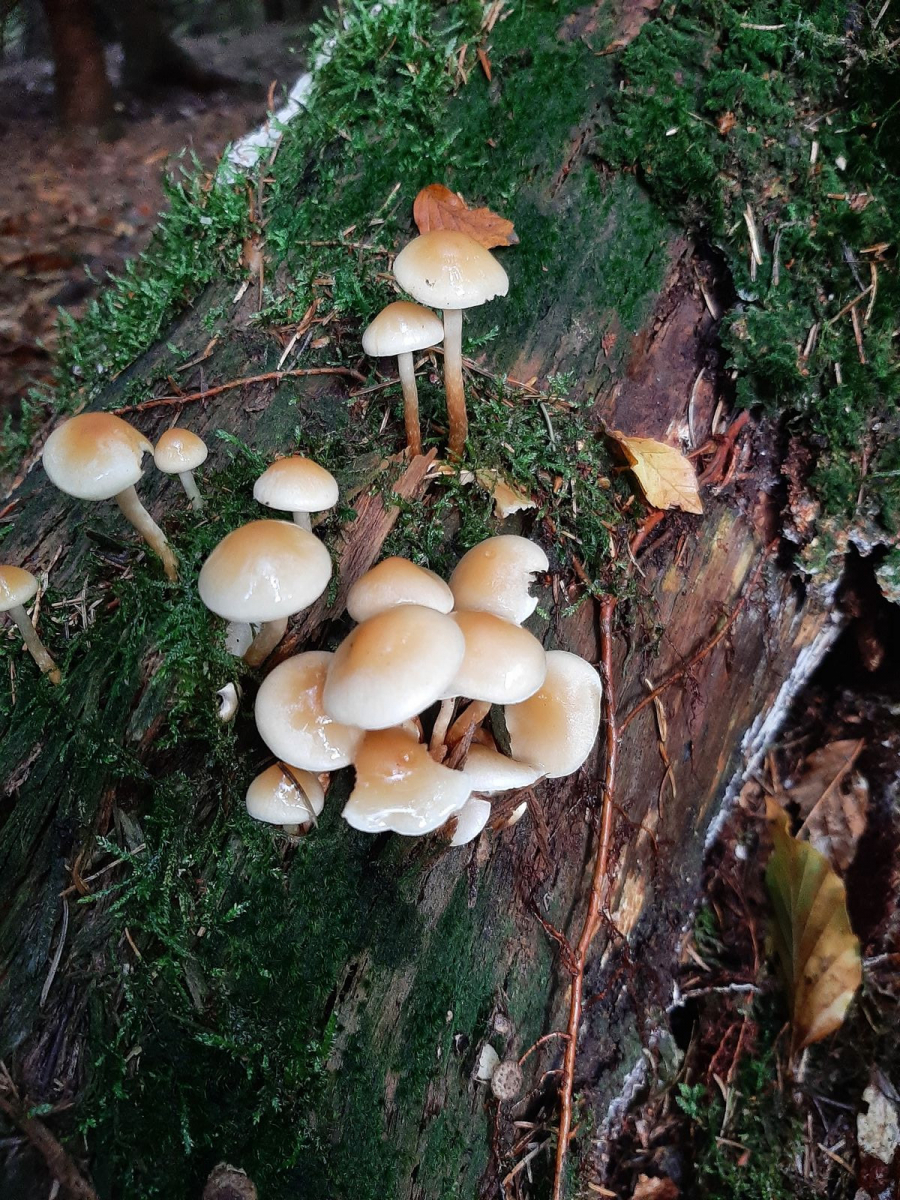 Und während ich so selig meine Runden drehe, lacht mich aus der ferne schon der nächste Baumstumpf mit ganz frischen Fruchtkörpern an. Ich beginne also mit der Ernte, arbeite mich langsam von den Wurzeln nach oben. Plötzlich werde ich stutzig...