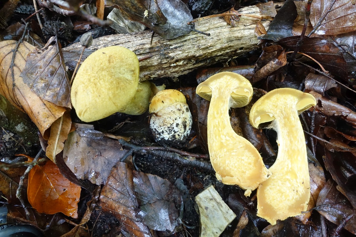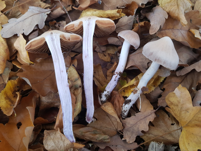 Eine weitere Telamonie fand ich in unmittelbarer Nähe vom obigen C.bulliardii, wobei dort auch einige (Hain)Buchen vorhanden waren. Dank des auffälligen Farbverlaufs am Stiel hat man eine ganz gute Chance, diese zu schlüsseln: Der Zweifarbige Wasserkopf (Cortinarius cagei) ist mit seiner lebhaft lilalichen unteren Stielhälfte ein wie ich finde hübscher Pilz.