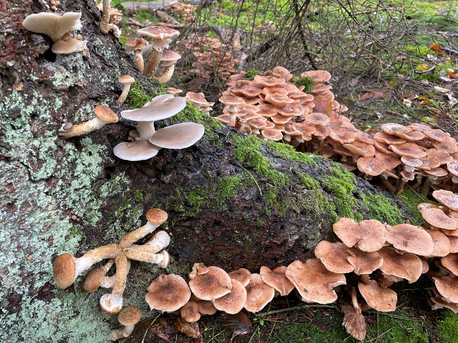 An Fichte ist für den Hallimasch normal, aber die Austern sehe ich sehr-sehr selten an Fichte und im Verbund mit dem Hallimasch noch nie.