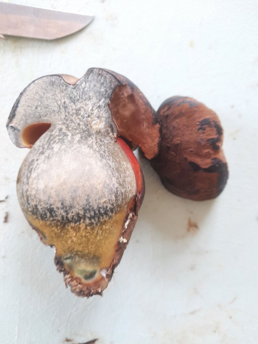 Ich tue mich immer ein bisschen schwer junge Exemplare vom Flockenstieligen und Netzstieligen Hexenröhrlingen zu unterscheiden. Vor allem weil ich schon Bilder gesehen habe, auf denen letzterer (scheinbar) auch einen dunklen Hut hat.