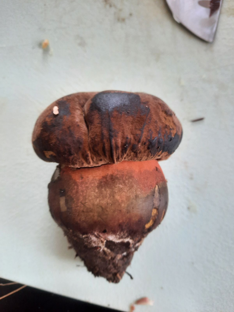 -Standort im Nadelwald direkt neben Maronenröhrlingen. Einziges Exemplar. Nebendran Rotfußröhrlinge.
