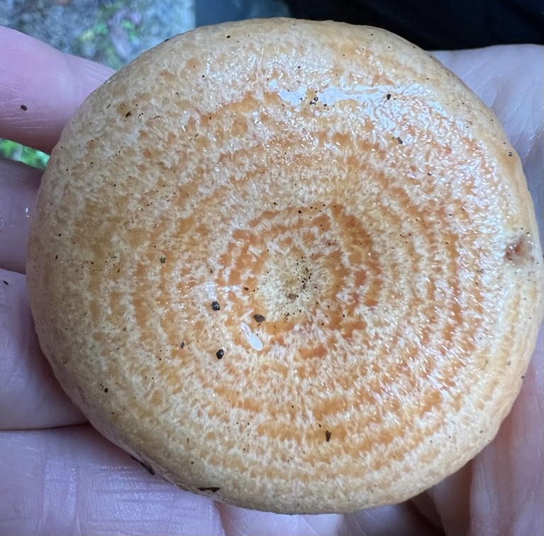 Die Huthaut und Stiel ist beim Lachsreizker oft etwas schleimig schmierig, vor allem wenns feucht ist, das sieht man hier auch ganz gut.
