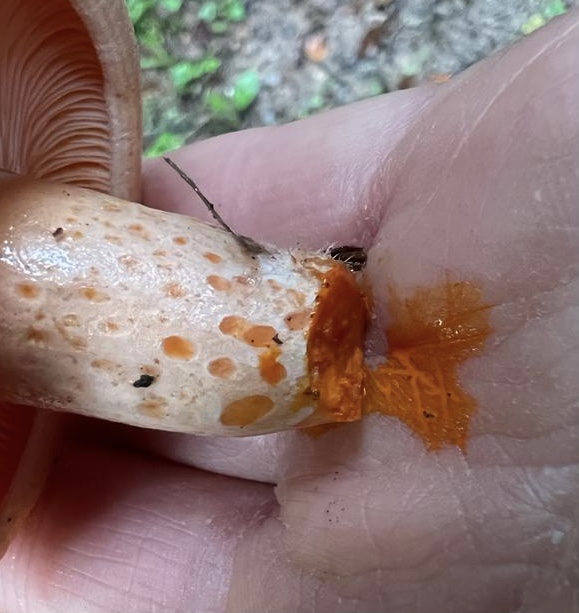 Ich war heute noch einmal vor Ort, eine Kiefer fand ich nicht, vom selben Standort habe ich nochmal ein Exemplar mit, im Querschnitt hat sich die Milch rötlich verändert.