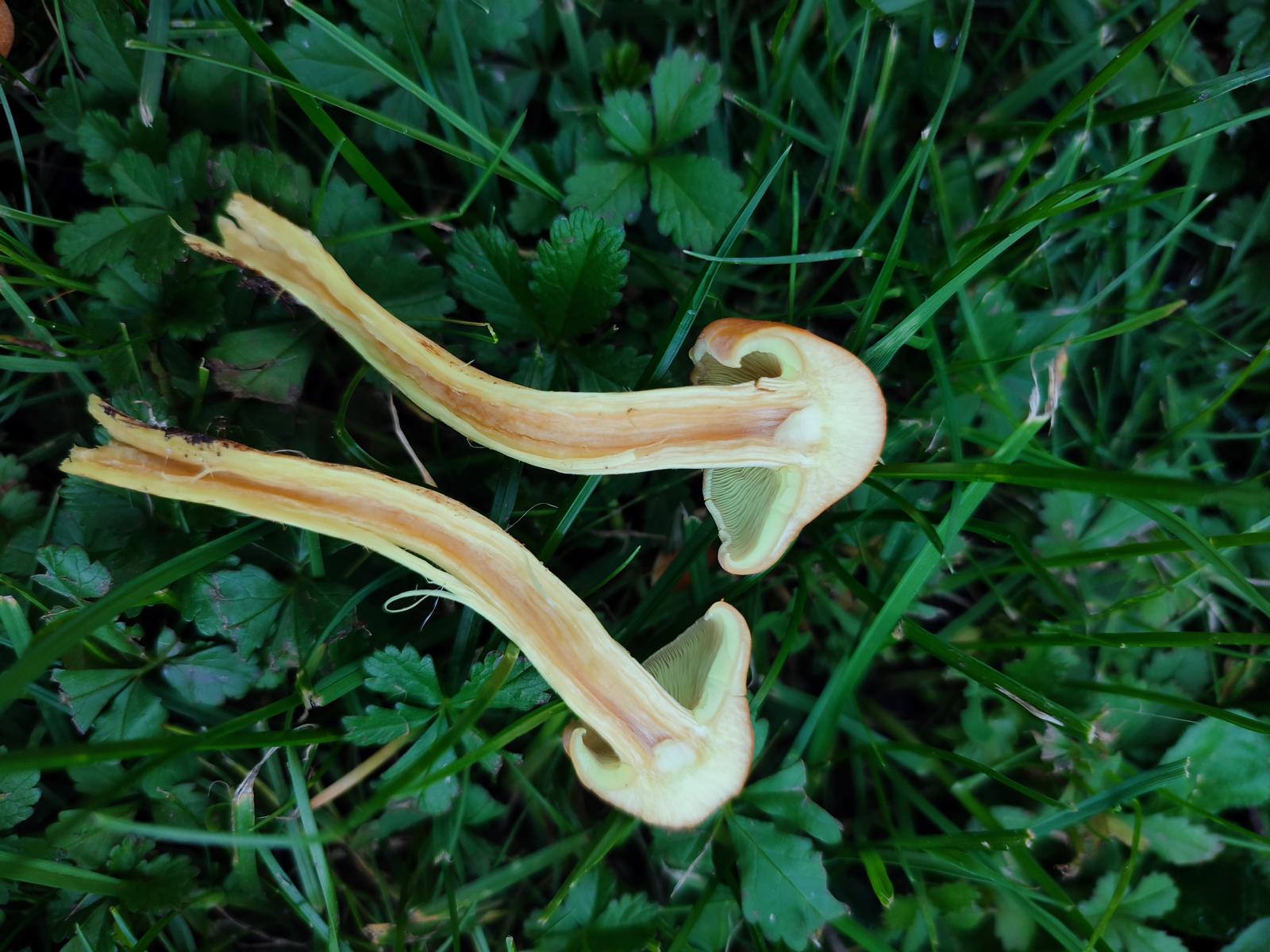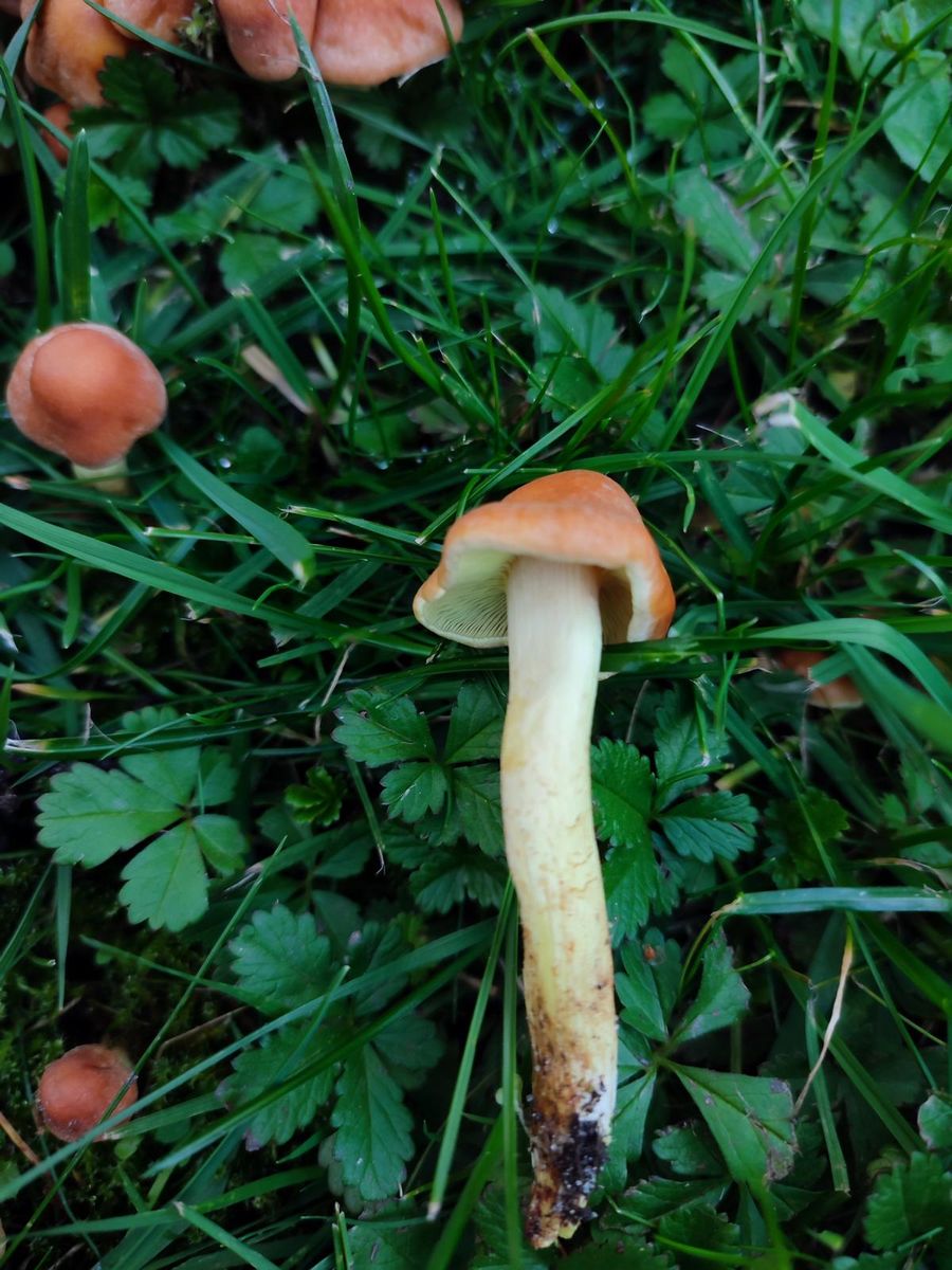 1. Wächst im Gras vor meinem Haus. Ungewöhnlich... Grünblättriger Schwefelkopf? Aber doch eigentlich nur auf Holz? Evtl. ne alte Wurzel drunter?