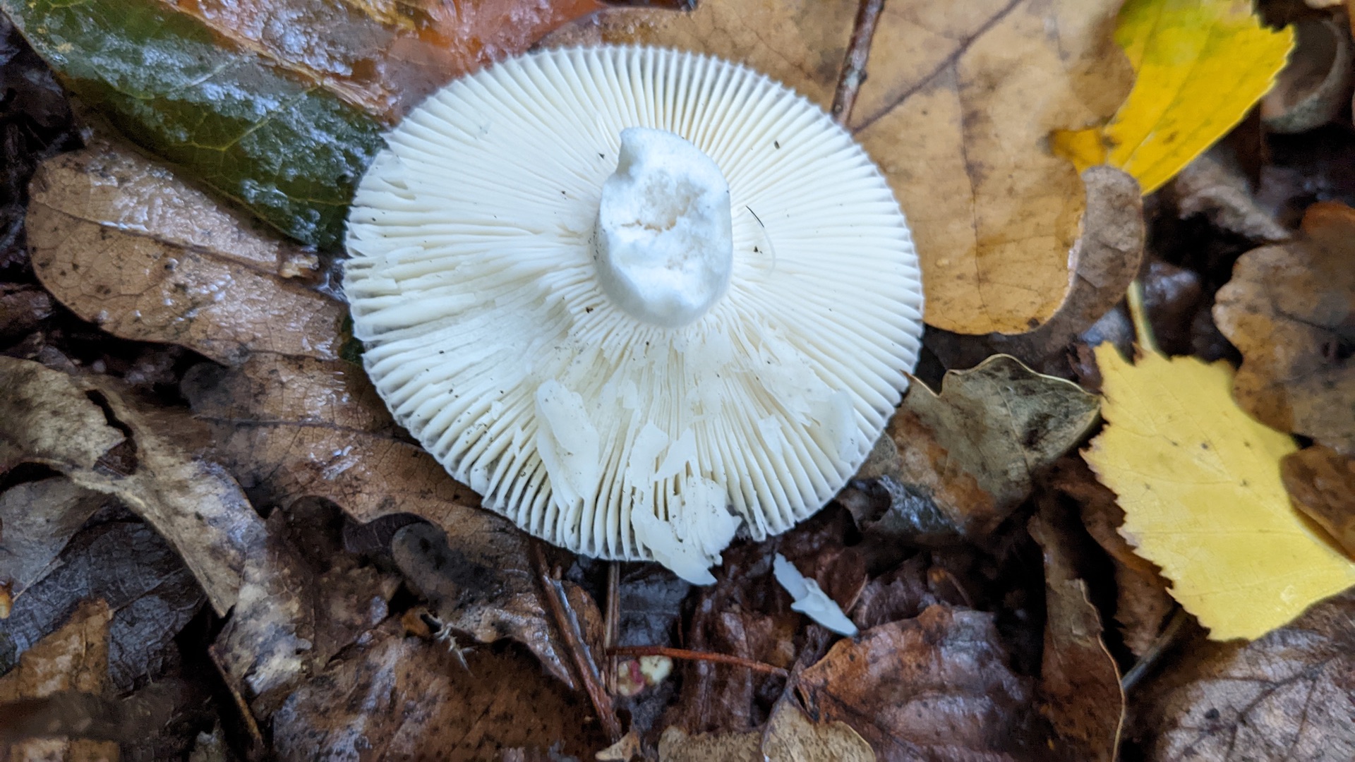 Erste eigene Täublingsbestimmung: Form recht klassisch. Kein Ring, keine Knolle oder ähnliches. Lamellen spröde und brüchig. Auch der Stiel bricht leicht, ohne Fasern.