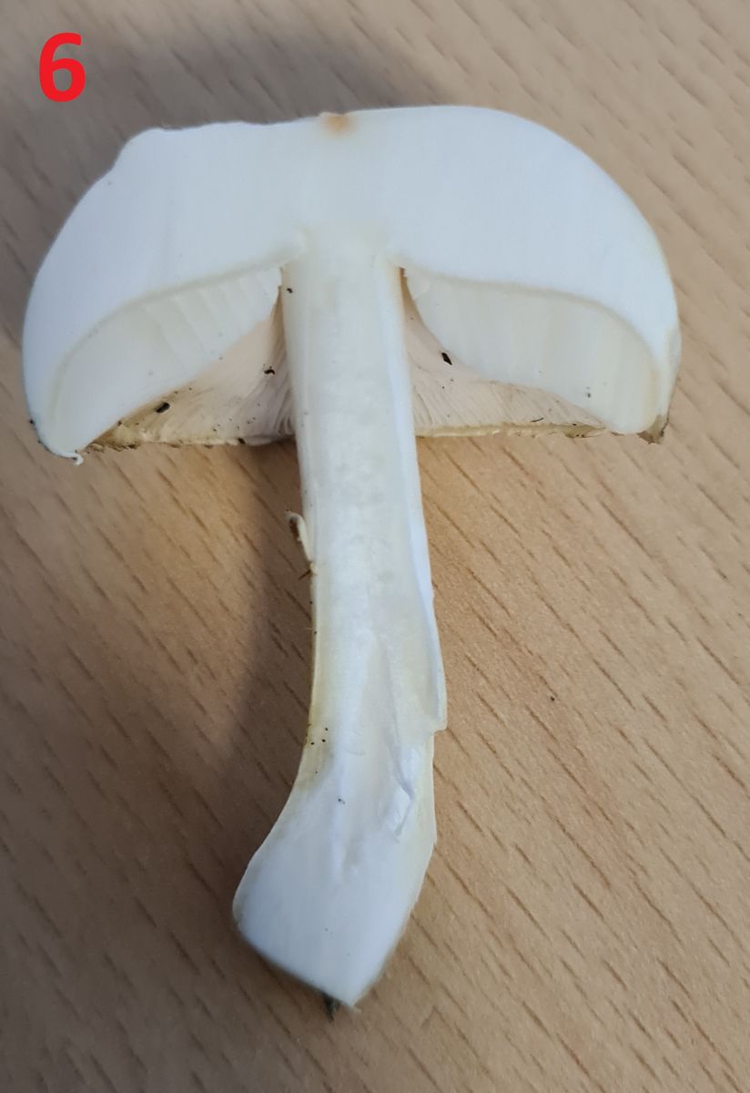 Lamellen: Weiße und dichte Lamellen, die nicht am Stiel angewachsen sind.