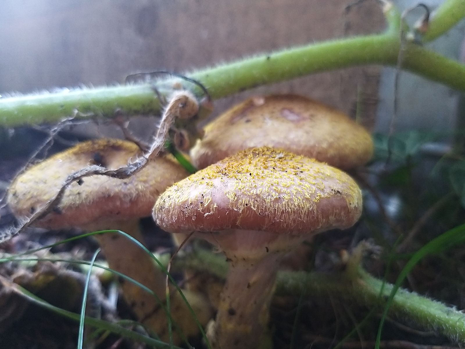 Sollte das nicht eher A. bulbosa sein, der gelbschuppige Hallimasch. Soweit ich weiß hat A. gallica zwar einen gelben Ring, aber eher graue/braune Hutschuppen.
