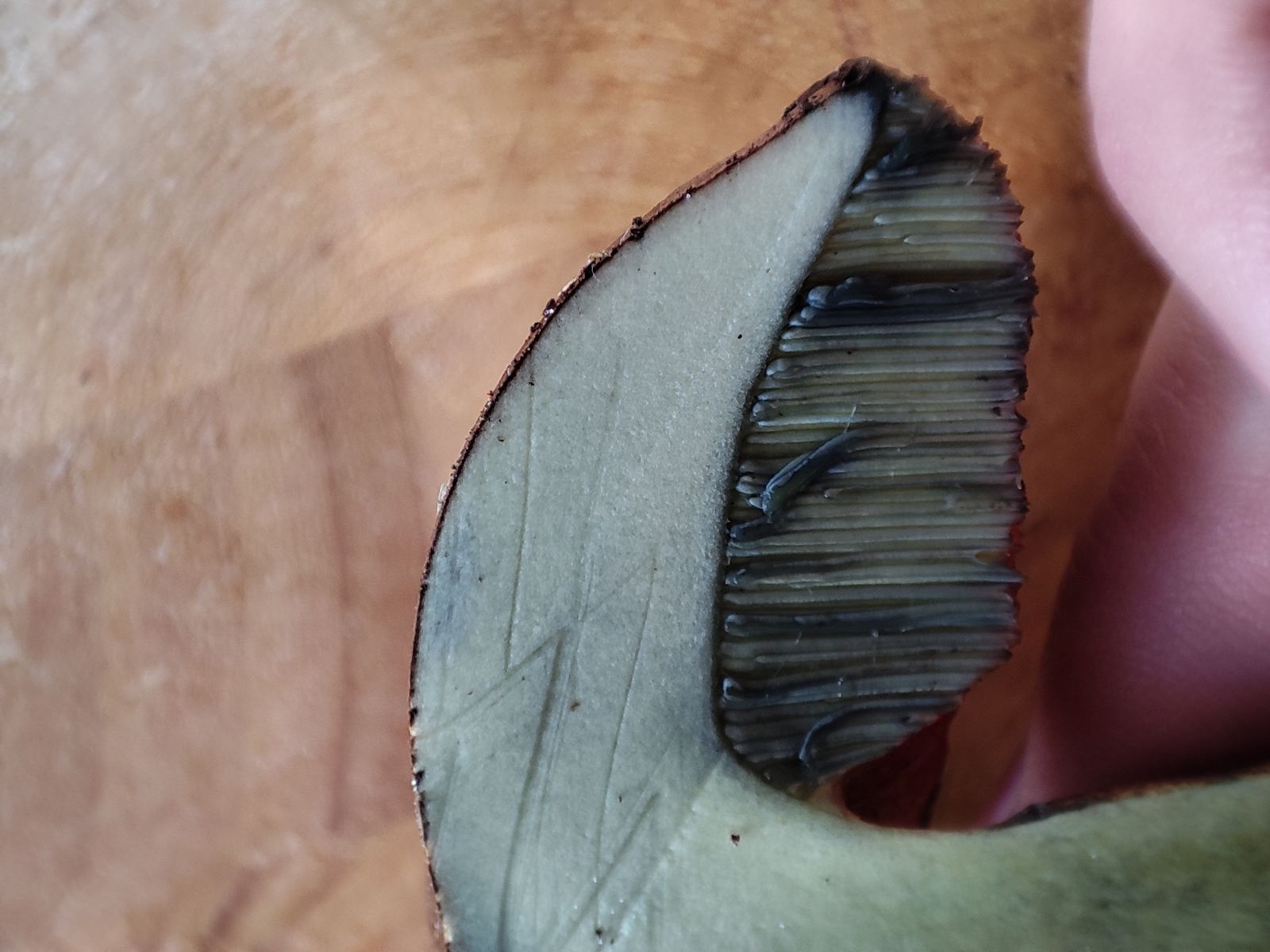 auch bei uns, im absoluten Flachland, melden sich langsam die ersten Röhrlinge. Habe ich hier einen Flocki gefunden? Jedoch wundert mich der helle Hut und, dass das Fleisch nicht so stark, wie erwartet, blaut.