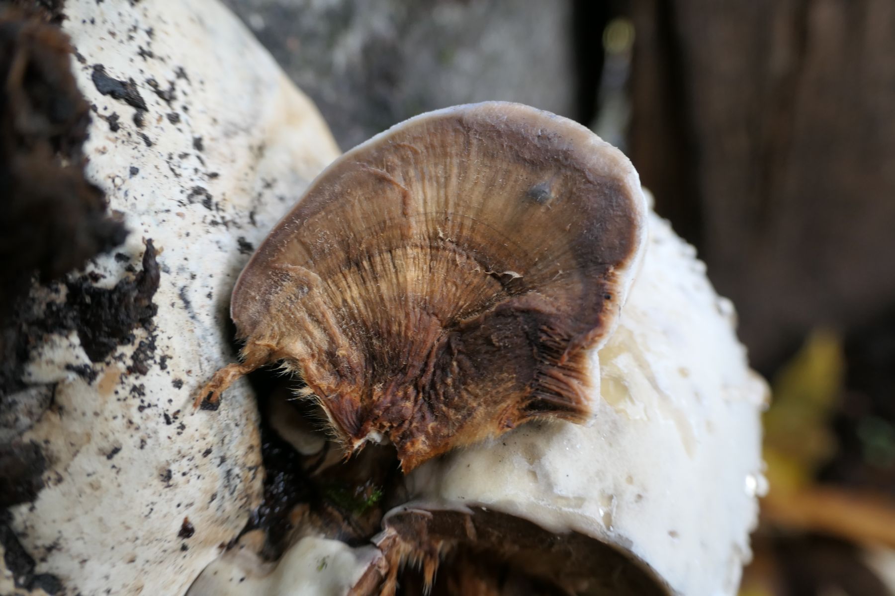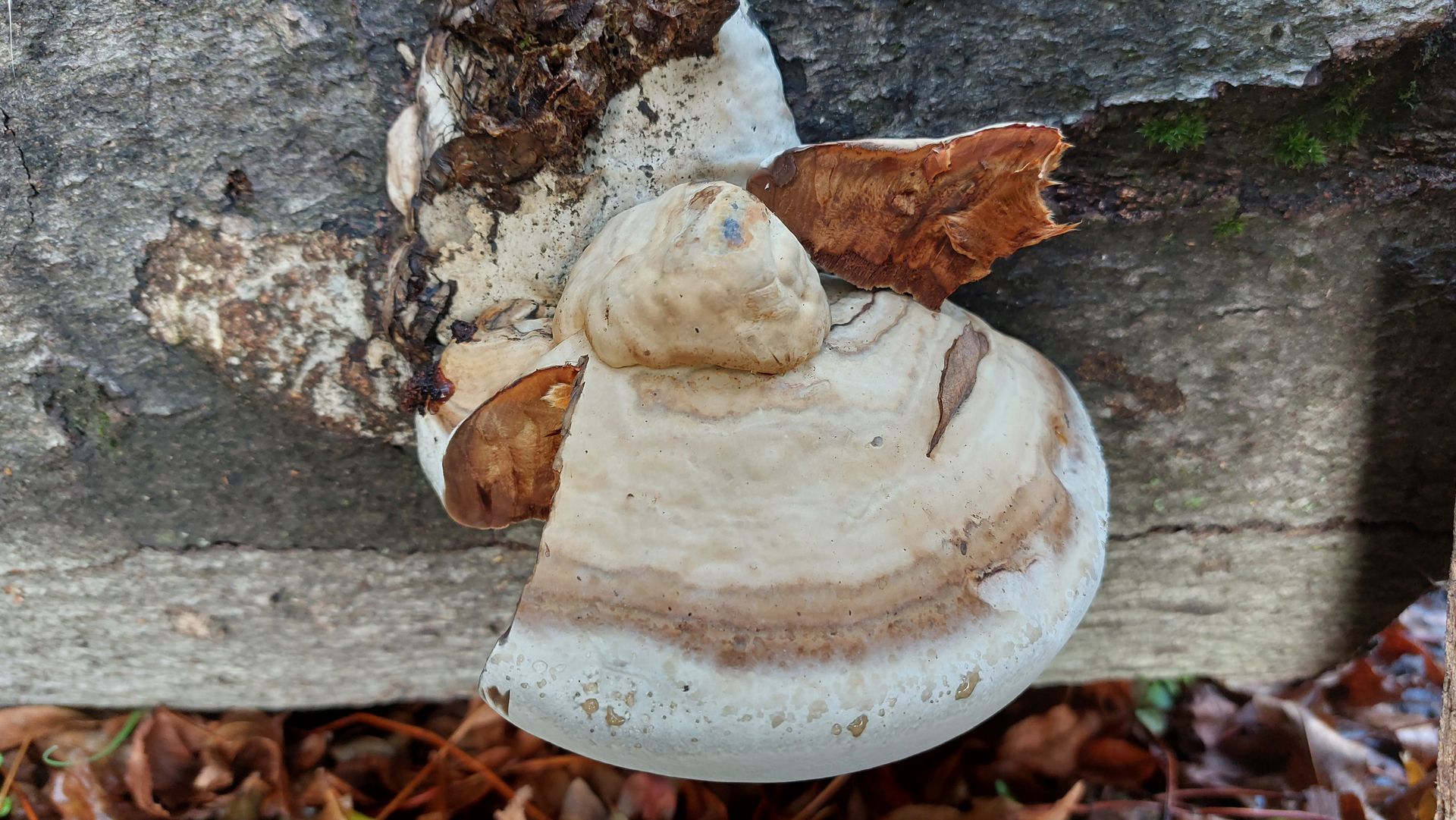 Das ist allerdings ja nicht der selbe Fruchtkörper, und auch nicht der selbe Fundort. Hier ist jetzt schon ein recht eindeutiger FomPini (Rotrandschwamm) an Nadelholz zu sehen.