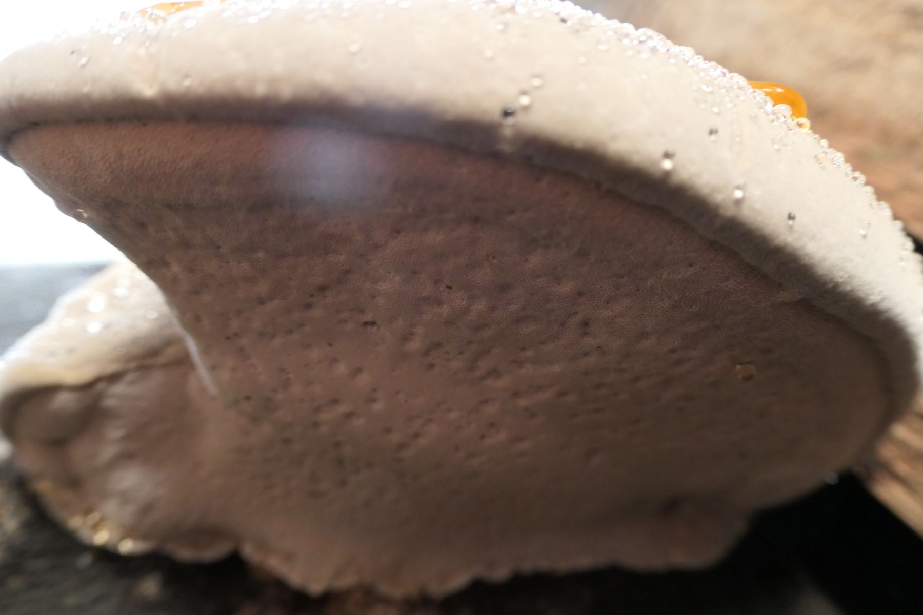 nochmal hingehen fänd ich gut, mich interessiert sehr, was rauskommt. Laubbaumholz kann der rotrandige Baumschwamm auch, habe ich schon häufig gefunden. Diese Guttationstropfen fand ich vor einiger Zeit bei einem Fruchtkörper an Kiefer, meine ich mich zu erinnern. Ich war mir mit Fomitopsis pinicola so sicher, dass ich nur ein einziges Foto gemacht habe. Ich erinnere mich aber, dass der noch ganz weich war und ältere Fruchtkörper am Stamm waren, die eindeutig F. Pinicola waren. Für mich leider zu weit weg, um nochmal hinzugehen. Mit ist natürlich klar, dass das 2 komplett verschiedene Pilze sein können.