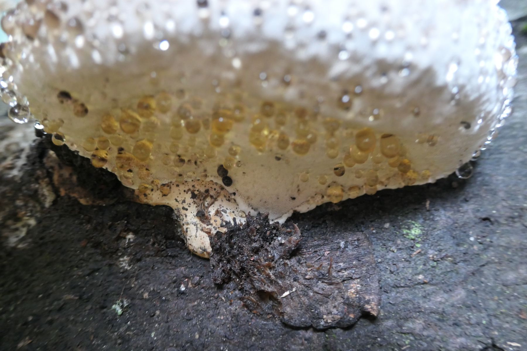 nochmal hingehen fänd ich gut, mich interessiert sehr, was rauskommt. Laubbaumholz kann der rotrandige Baumschwamm auch, habe ich schon häufig gefunden. Diese Guttationstropfen fand ich vor einiger Zeit bei einem Fruchtkörper an Kiefer, meine ich mich zu erinnern. Ich war mir mit Fomitopsis pinicola so sicher, dass ich nur ein einziges Foto gemacht habe. Ich erinnere mich aber, dass der noch ganz weich war und ältere Fruchtkörper am Stamm waren, die eindeutig F. Pinicola waren. Für mich leider zu weit weg, um nochmal hinzugehen. Mit ist natürlich klar, dass das 2 komplett verschiedene Pilze sein können.