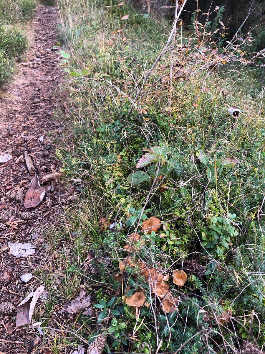 3) Goldstielige Leistlinge, stellenweise wuchsen sie in grossen Gruppen am Wegrand