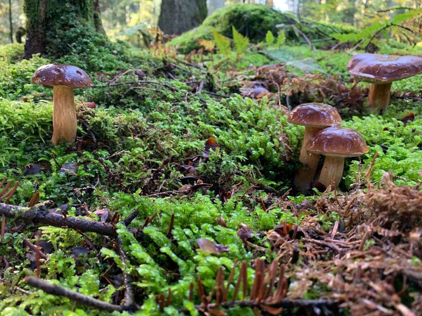 a) Die Steinpilze hatten hier ihren Riesenschub Anfang Oktober, es kommen aber teilweise auch noch schöne frische. Ich freue mich allerdings auch über die riesigen Gammler die hier überall stehen, das zeigt nämlich, dass die Plastiktütensammler diesen Wald noch verschont lassen.