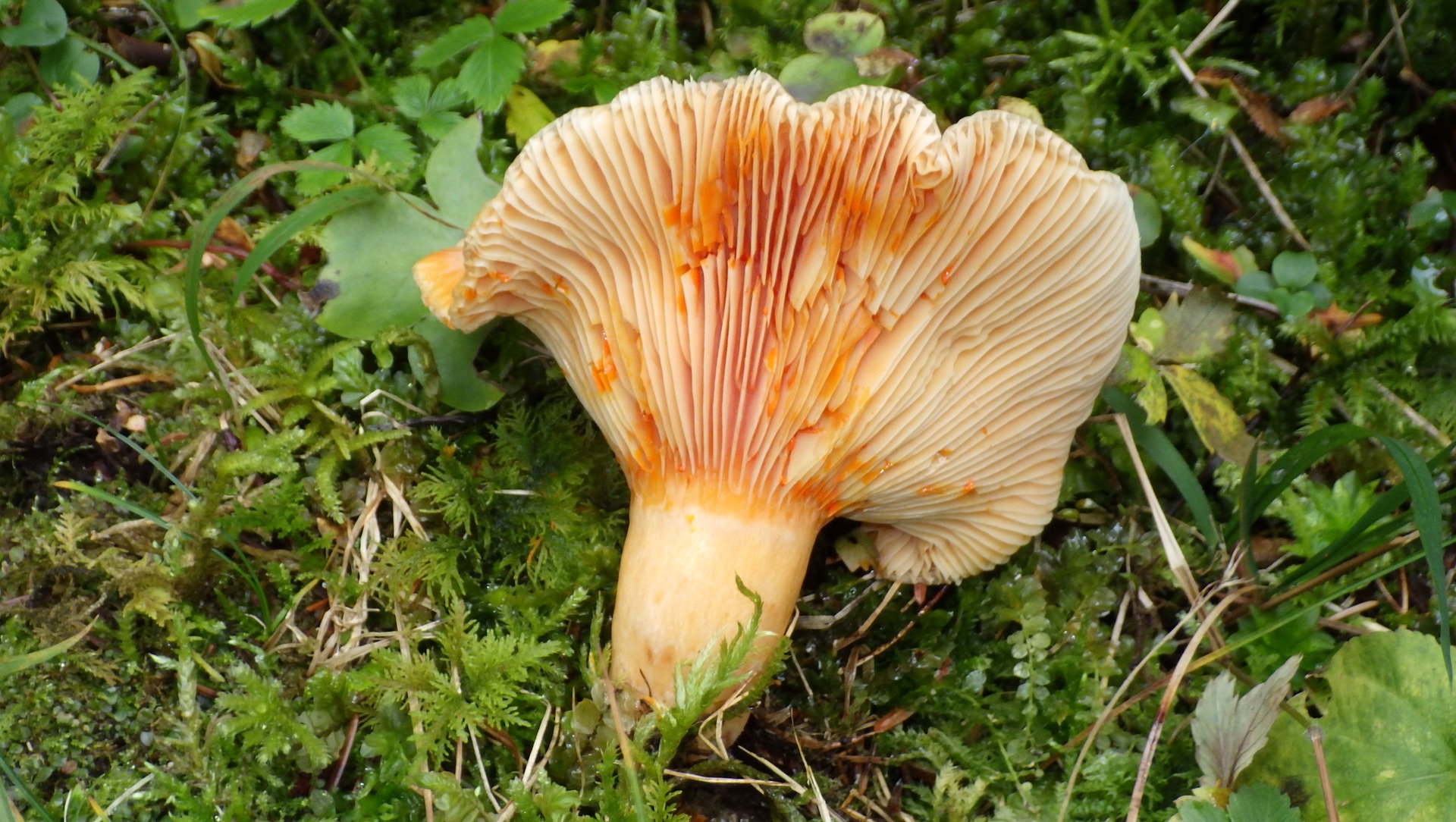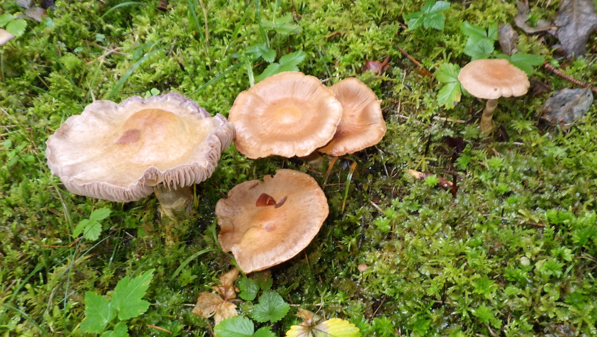 1) Buchenmilchling? wobei ich mir nicht ganz sicher bin, ob dort überhaupt Buchen waren! Die Farben und die weisse Milch könnten dafür sprechen.