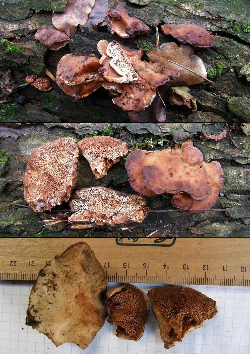Der älter Fruchtkörper war relativ zäh und schwer vom Substrat zu trennen