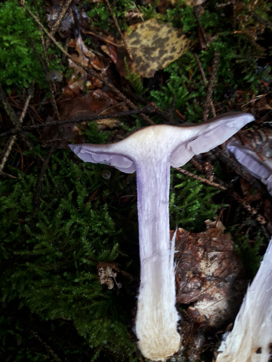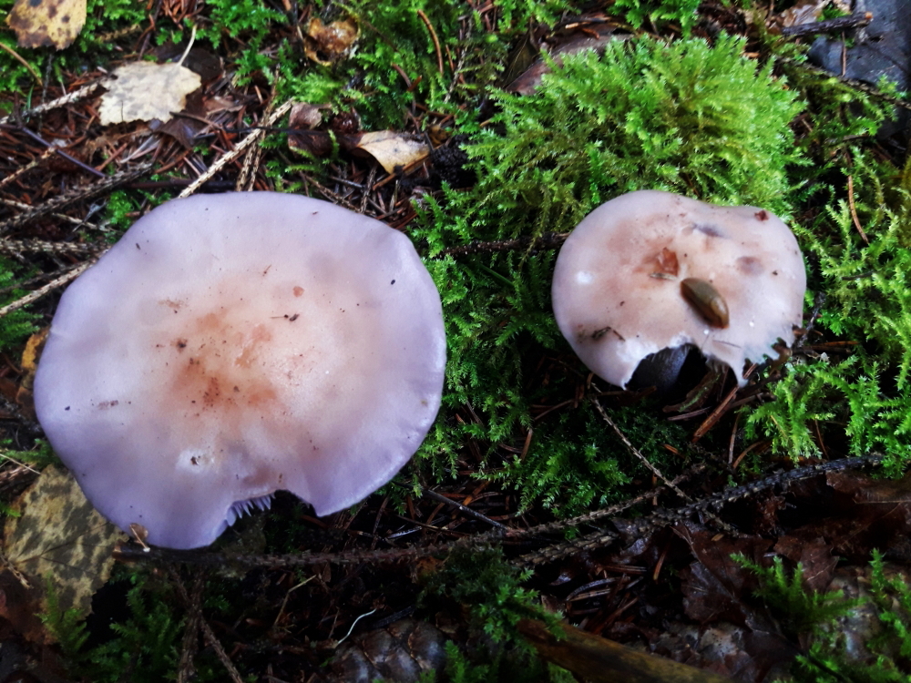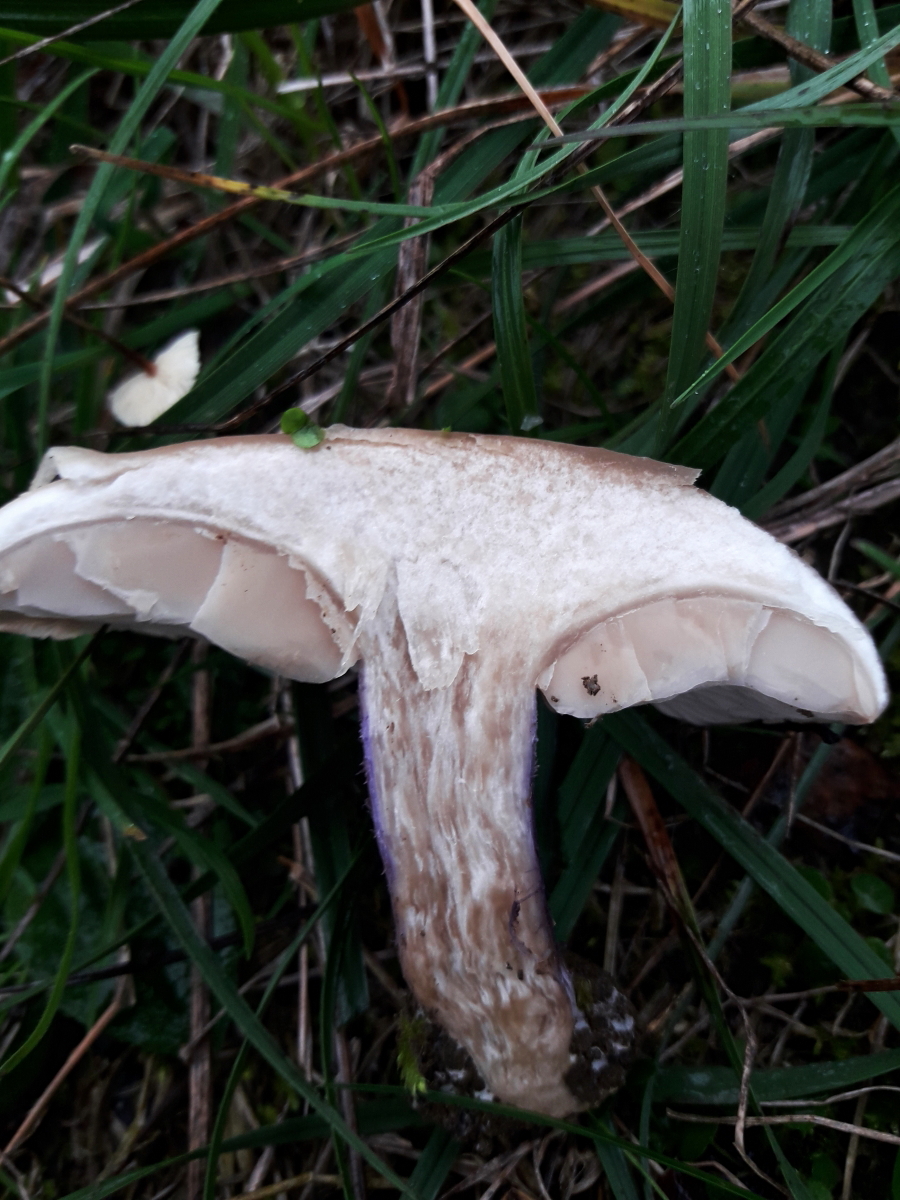 1. Rötelritterling, der Stiel ist schön lila, Hut und Lamellen nur sehr wenig. (Vielleicht der lilastielige Rötelritterling)