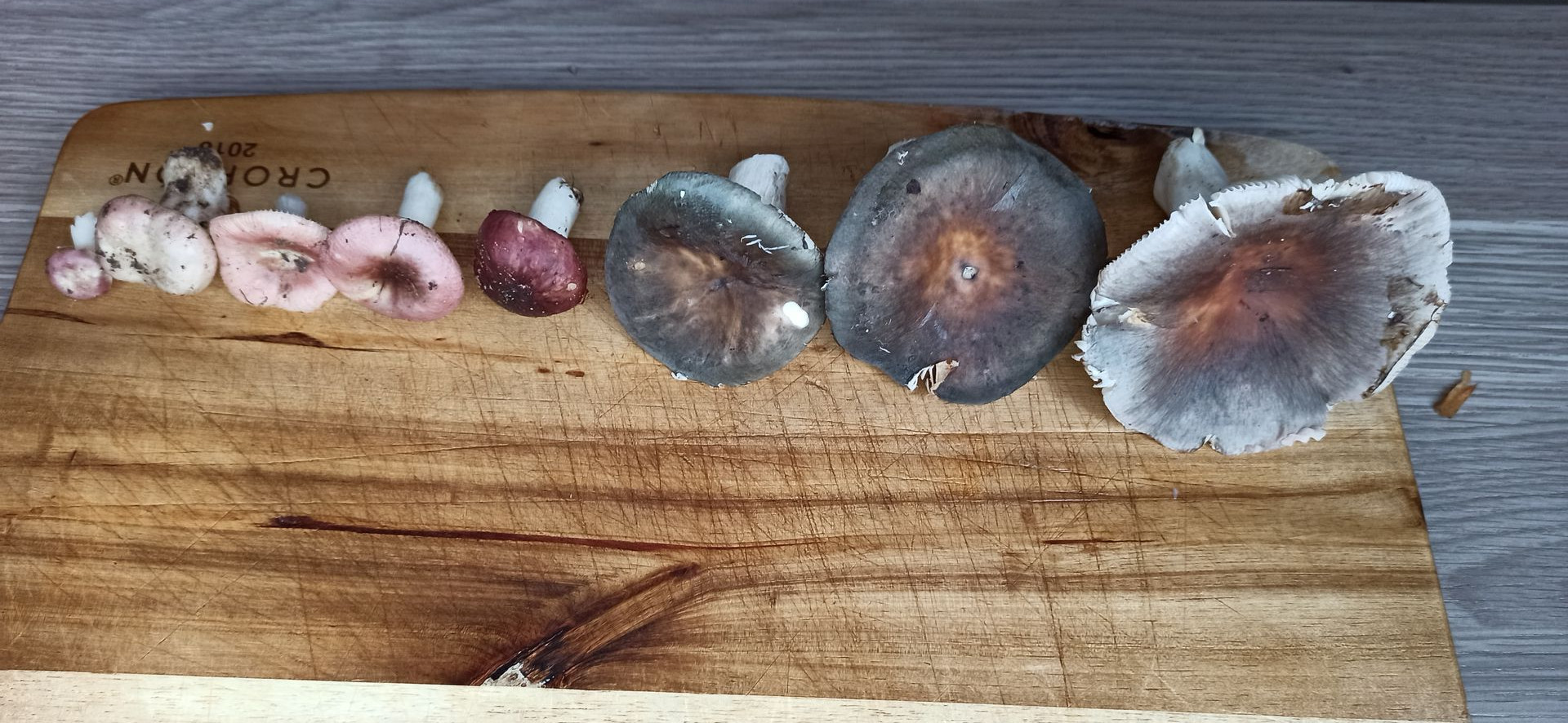 Zu Pilz 7: Ich hab alle mal angeknabbert und der mit dem dunklen roten Hut hat leicht scharf geschmeckt, die anderen neutral.
