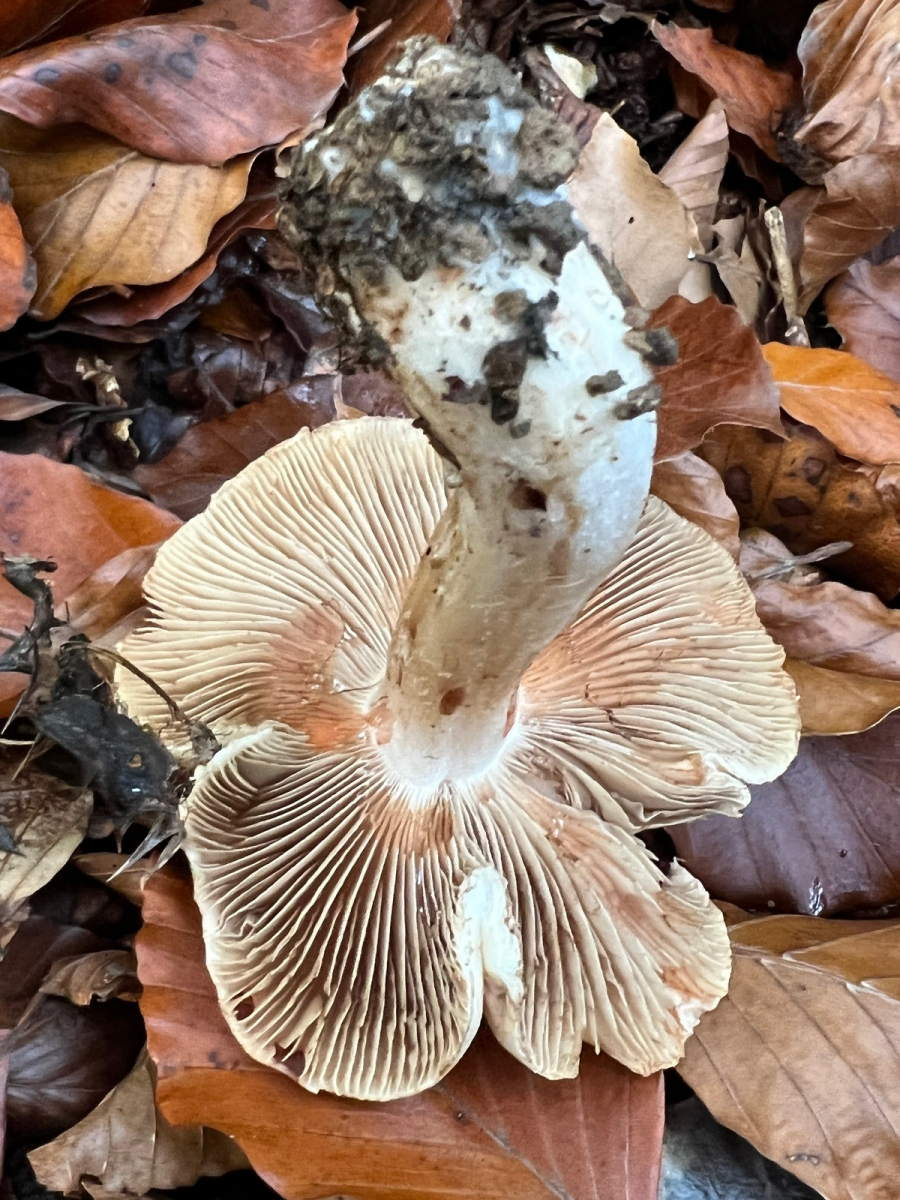 in dem Zustand schwer. Ich meine rosa Sporenpulver zu sehen und kann Richtung entoloma tippen. Vielleicht der weisstielige Rötling.