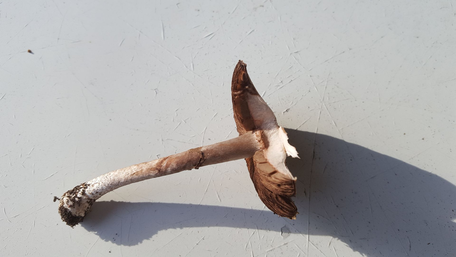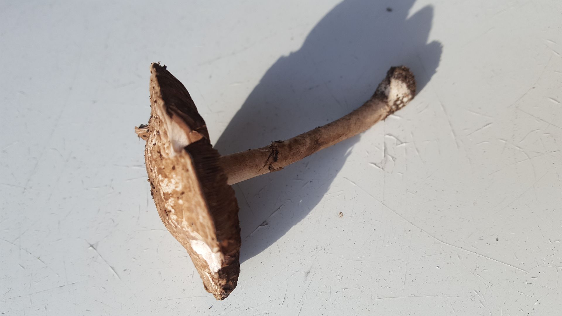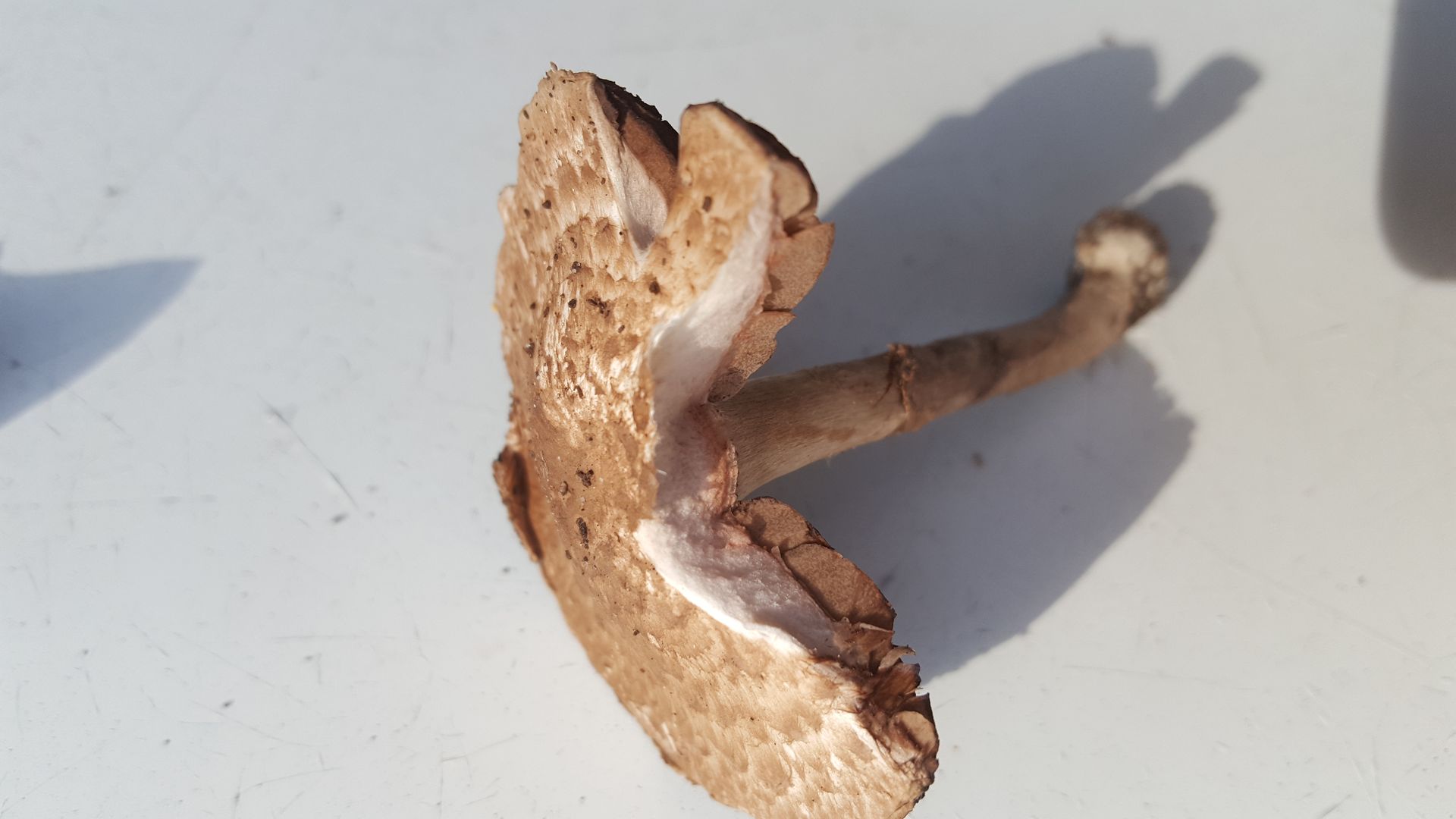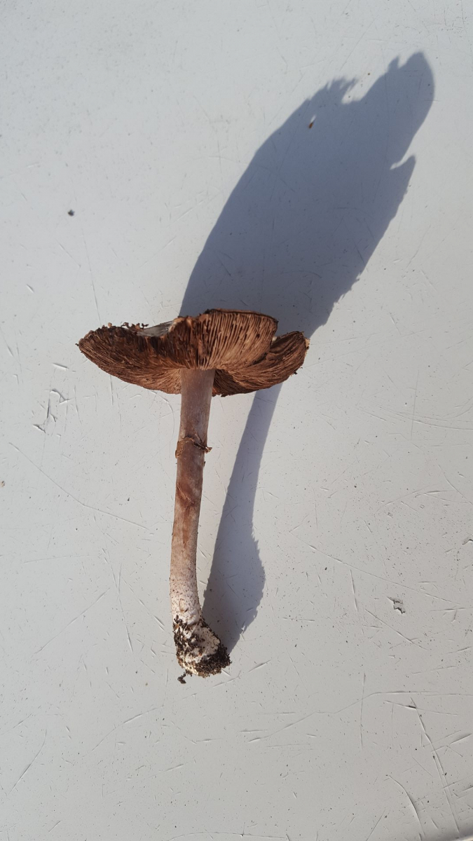 ganzen hinten links im Garten, etwas versteckt in tiefem Laub, fand ich eine Gruppe von ca. 6 dicht beisammenstehen Pilzen. Standort ansonsten kaum definierbar (Kiefernstumpf, Eibe, Eiche, Hainbuche in der Nähe). Geruch leicht würzig.
