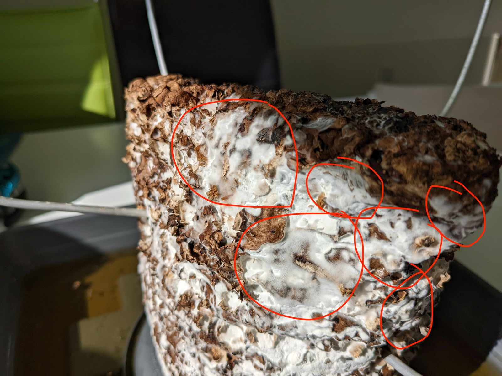 ich habe vor kurzem meine Shitake-Kultur erneut aktiviert, und bin mir nicht sicher, ob ich gerade einen Schimmelbefall habe oder nicht.