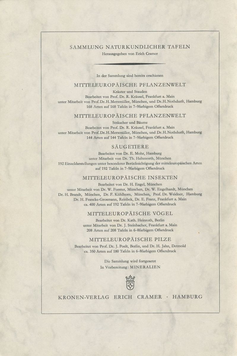 Die Sammlung naturkundlicher Tafeln besteht aus 180 Einzeltafeln. Eine Seite die Beschreibung, andere Seite die Abb.