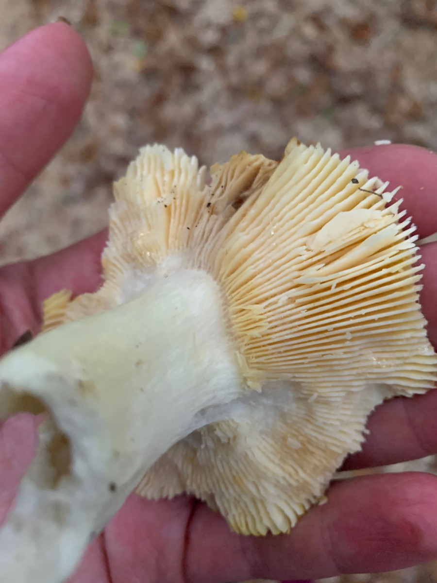 War heute noch einmal im Wald auf der Ostalb, Kalkbuchenwald auf knapp 400m, südexponierte Hanglage. Dort gab es diesen Täubling mit mildem Geschmack, mir fällt nix ein als der Goldtäubling, aber ende Oktober?
