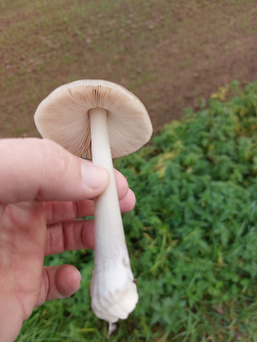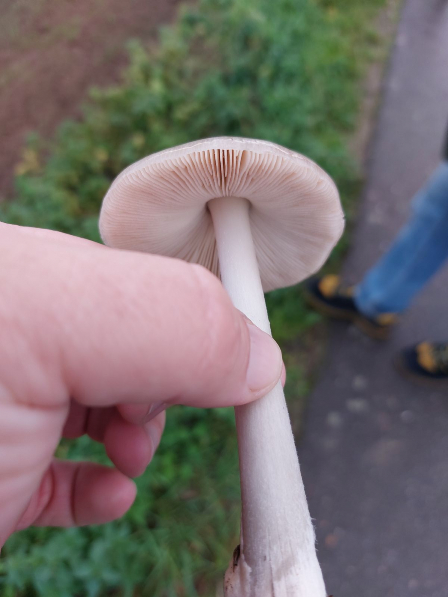 Ich habe diesen Pilz an einer Straße gefunden. Es waren keine Bäume in der Nähe von daher denke ich das es ein Pilz ohne Baum Begleiter ist. Es waren wirklich nur Felder in der Nähe hab da erst mal genau umgeschaut. Leider ist mir ein Stück der Basis abgebrochen und ja die kann zur genauen Bestimmung wichtig sein.