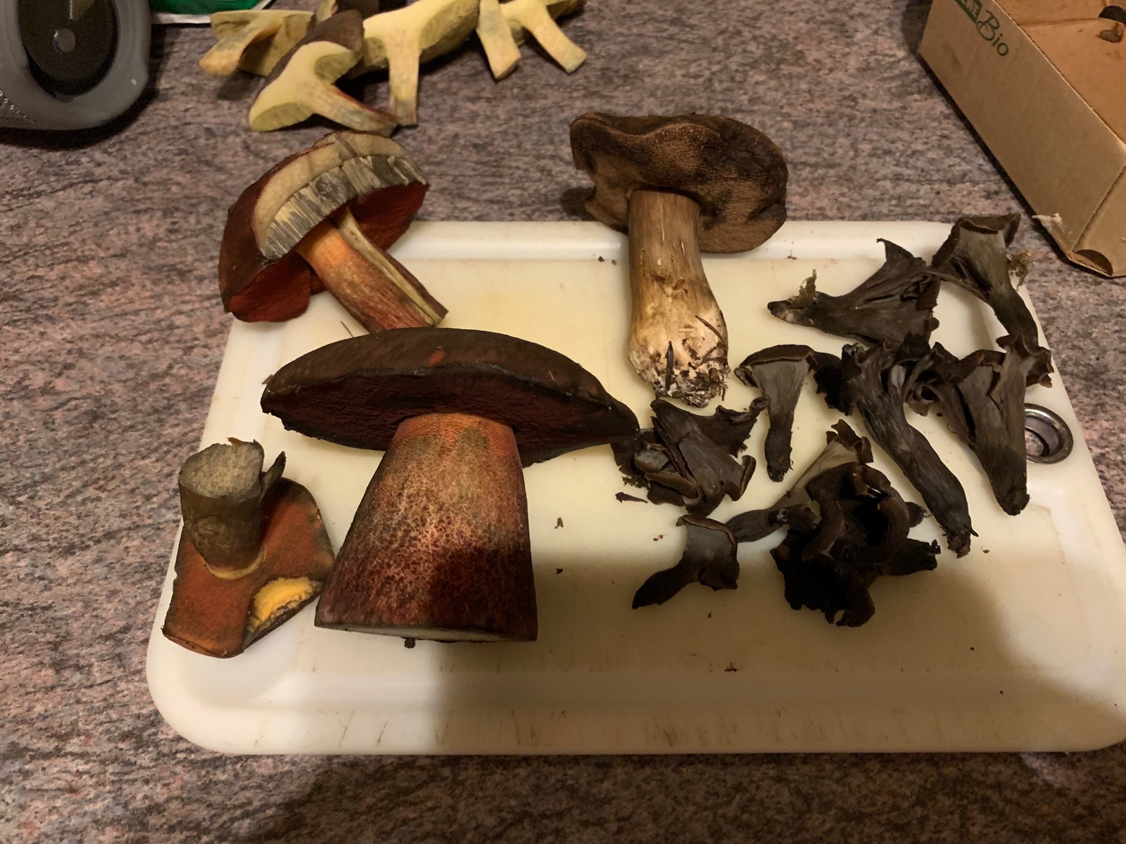 Mal ungeachtet von den Arten, die du gefunden hast, würde ich deine Funde (auch wenn es an sich essbare Arten wären) aus Fischgründen zu 90% nicht mehr anrühren. Der Frischezustand erklärt mir auch dein Bestimmungsproblem. Ich glaube, das schwarze Objekt, das zu zeigst, ist irgend ein verschimmelter Dickröhrling.