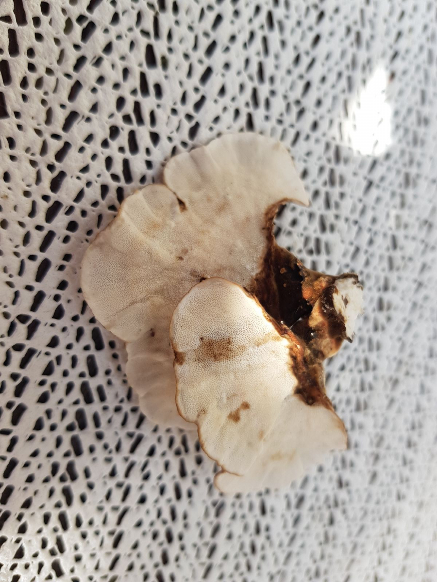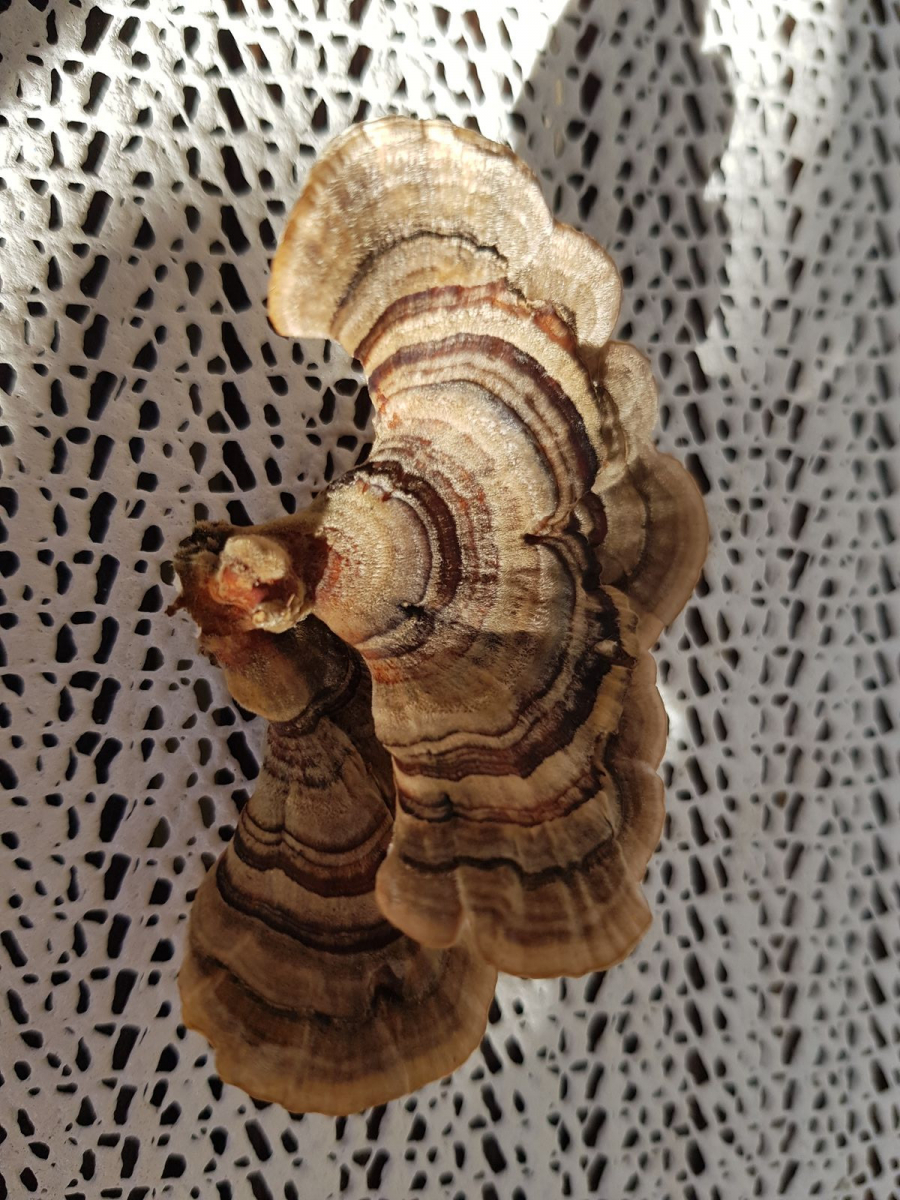 Ein Tipp wäre: Die Schmetterlings-Tramete kommt normalerweise auf Laubholz vor, auf Nadelbäumen findet man sie selten.