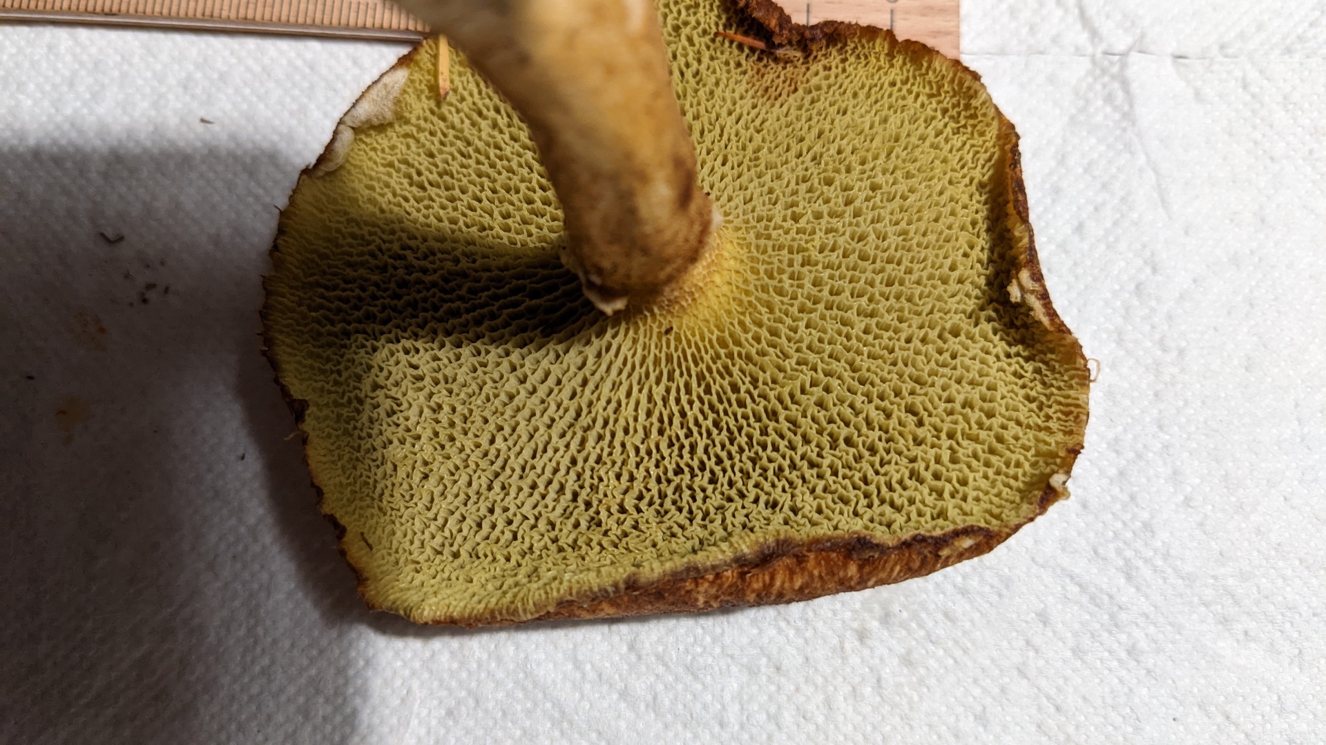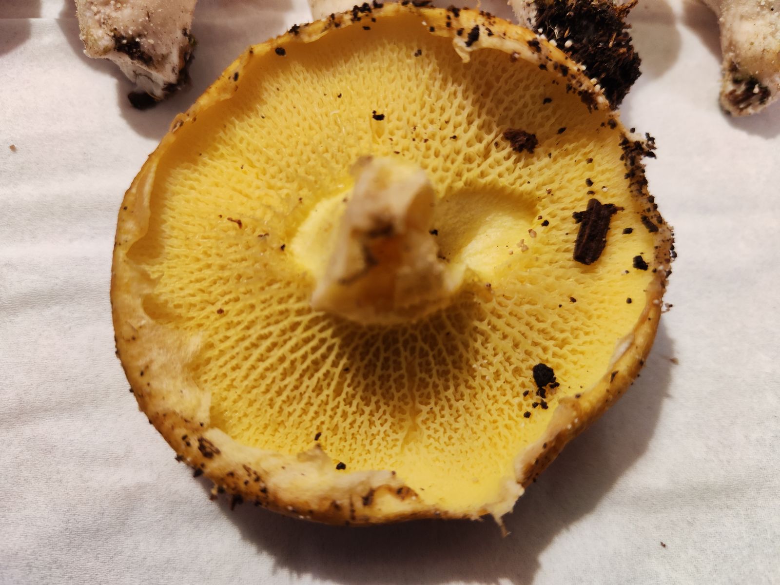 So viel ich weiß, gibts da mehrere Arten, das sieht irgendwie nach dem gelben Hohlfußröhrling aus.