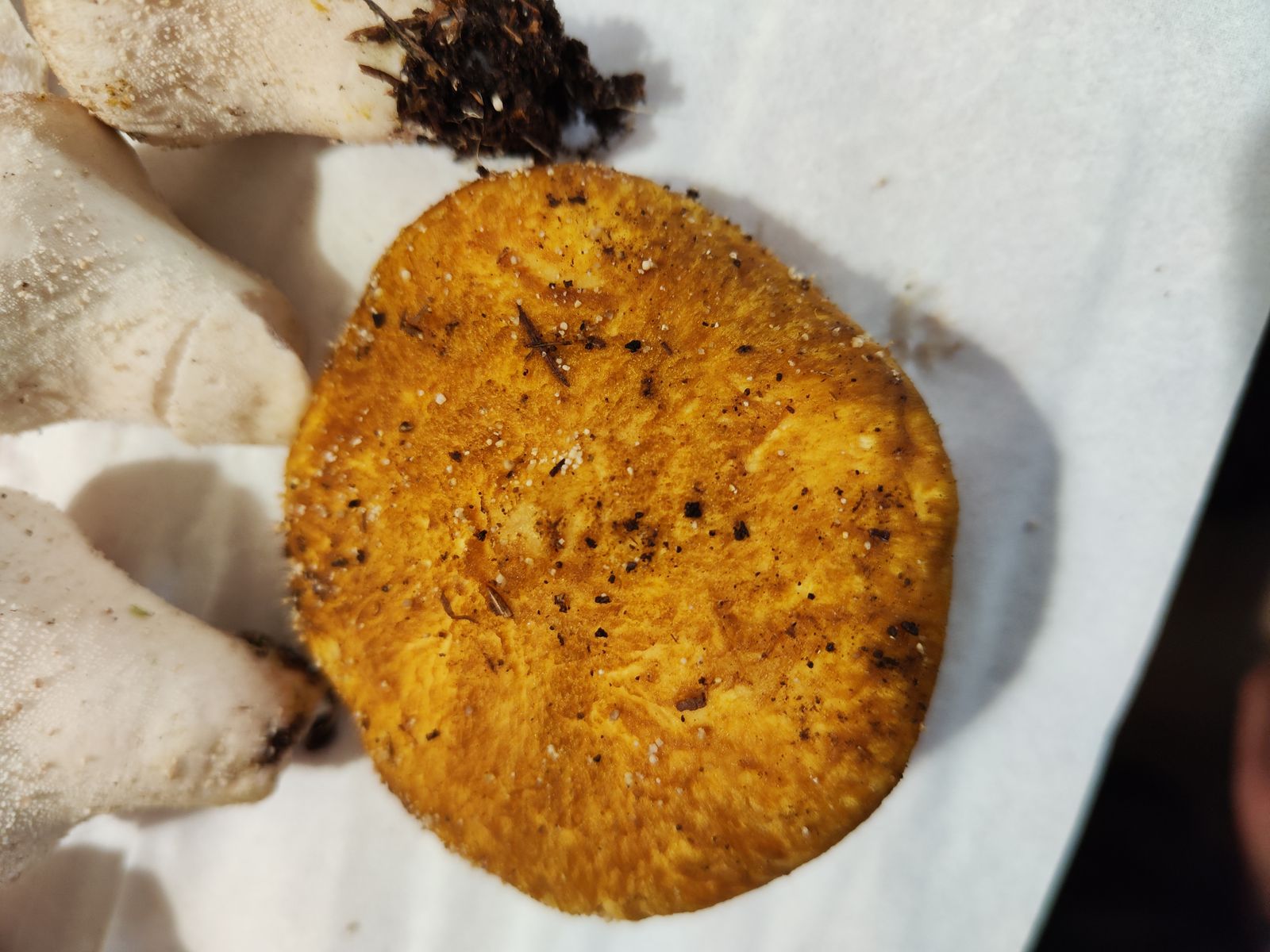 Bei den Pilzen sind eindeutig Lärchenzweige und Nadeln zu erkennen.