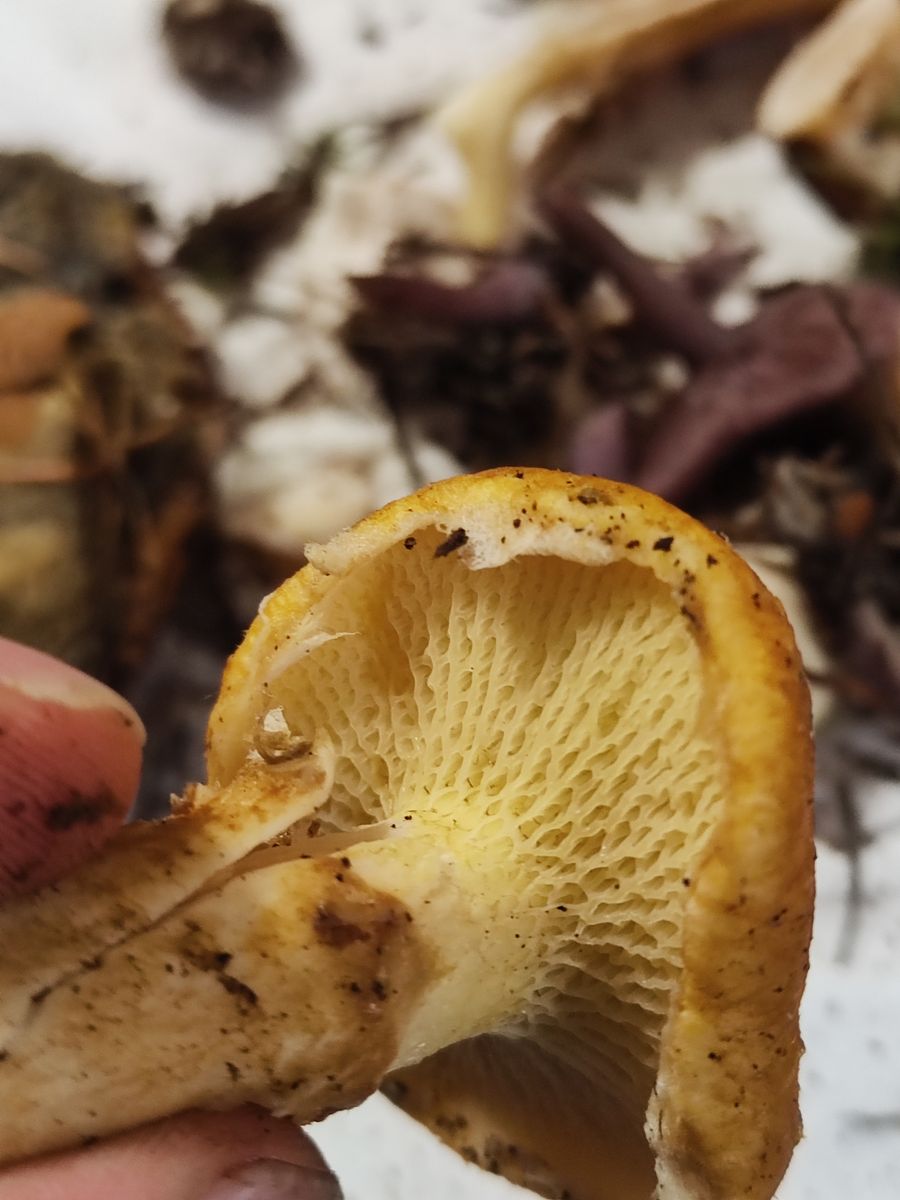 So viel ich weiß, gibts da mehrere Arten, das sieht irgendwie nach dem gelben Hohlfußröhrling aus.