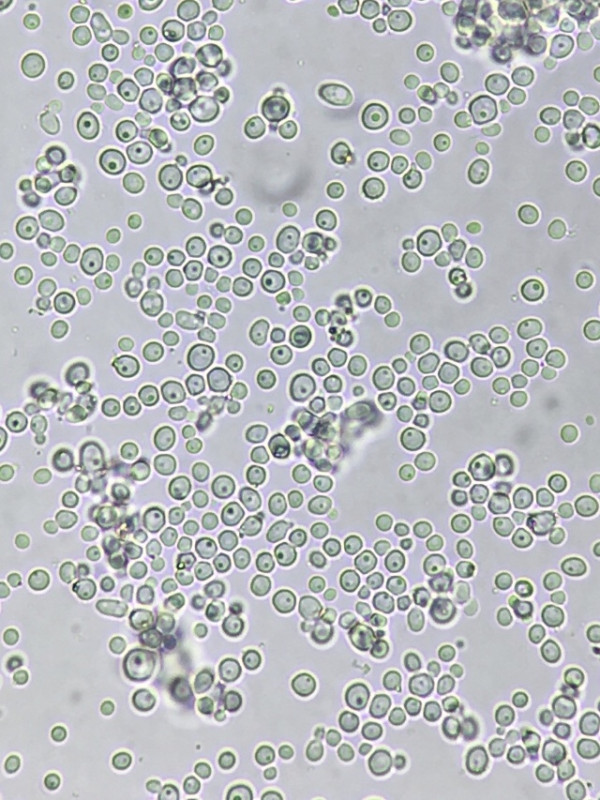 tja, aber "Schimmel" kann ich hier keinen - zumindest keinen wirklich erkennen - zumindest die Gattung wäre da schon zu erkennen. Ich sehe keine Hyphen, Konidienträger oder konidiogene Zellen, auch keine Schimmelsporen bzw Konidien (die ja auch nicht unterschiedlich groß sein sollten). Eventuell lass ich mir da Hefezellen einreden. Wie groß waren denn diese irgendwie runden Dinge?