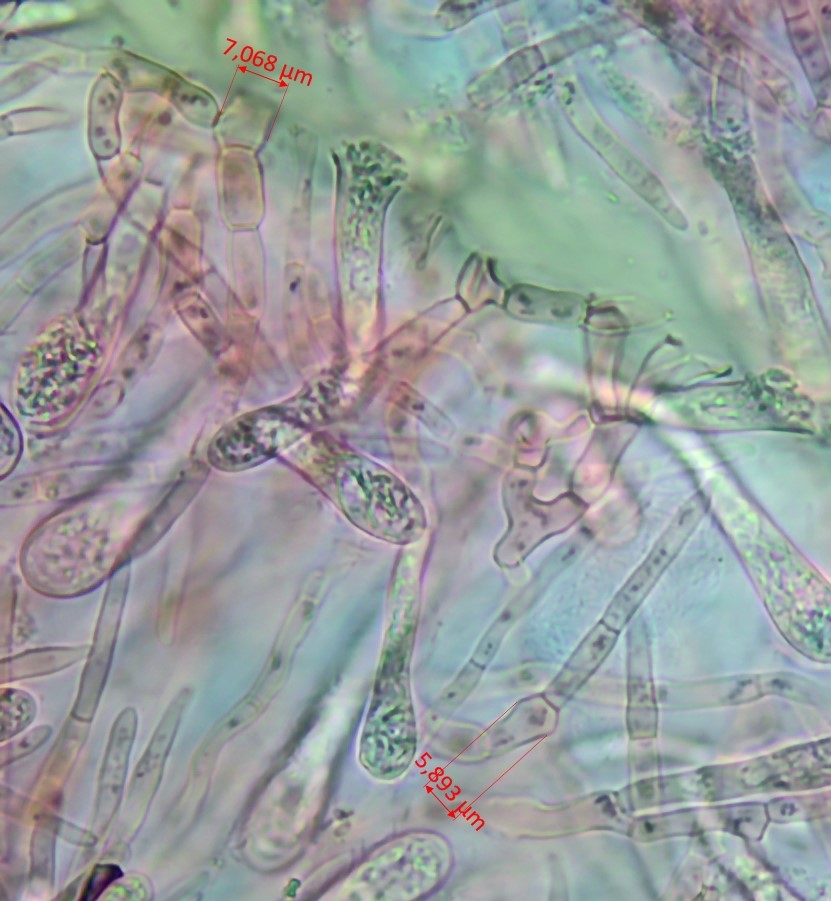 ich denke auch dass es makroskopisch wohl unspezifisch bleibt, aber auch mikroskopisch finde ich es hier gar nicht einfach, da die Arten sich in vielen auch mikroskopischen Merkmalen ziemlich ähnlich sind. Beim Sporenpulver gibt Marxmüller für Ionochlora IIa an, da passt IIc auch besser zu grisea. Die Pileos sollten bei ionochlora noch breiter ausfallen. Die Basis der Epikutishaare beschreibt MXM wiederrum als schlank bei grisea. Hier meine ich schon breitere Elemente zu erkennen.